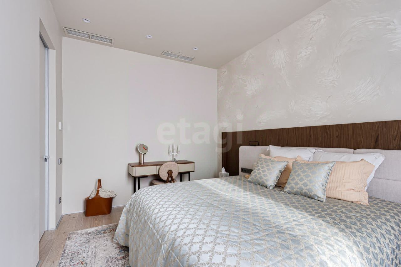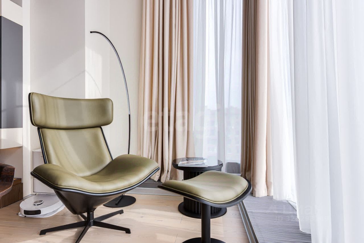 Апартаменты площадью 128,1 кв. м расположены на территории eco-luxury резиденций River Residences. Архитектурный облик комплекса разработан знаменитым архитектором Сергеем Чобаном. Все резиденции выполнены в едином стиле с фасадами из натурального камня, добываемого в Португалии. Художественные решения фасадов вдохновлены близостью к воде и пластикой академических гребных лодок, скользящих по Москве-реке. В River Residences большое внимание уделено энергосберегающим технологиям: широко применяется вакуумная изоляция. Система вентиляции с рекуперацией воздуха и сохранением естественной влажности формирует в помещениях комфортный микроклимат. Впервые на российском рынке были применены энергоэффективные окна четвёртого поколения от австрийской компании Internorm. Каждый юнит в клубном поселке имеет выход во двор или к реке, либо располагает собственным участком на берегу. Комплекс оборудован подземным паркингом на 93 машино-места с зарядными устройствами для электромобилей и бесшумными гидравлическими лифтами, ведущими непосредственно в резиденции. Все резиденции находятся под круглосуточной профессиональной охраной. Доступ на территорию строго регламентирован. Серебряный бор — это вековые сосны, растущие на песчаных дюнах, прогулочные зоны в сохранённом природном заповеднике, аутентичное Бездонное озеро, пляжи и одновременно остров, который принято считать местом отдыха. Уникальное расположение элитарного клубного комплекса River Residences на набережной Москвы-реки — в тихом, живописном месте — и исключительные видовые характеристики не оставят равнодушными, позволяя в полной мере ощутить гармонию переплетения многовековой истории с современными технологическими и архитектурными решениями XXI века. Остров Серебряный бор имеет богатую историю, был по достоинству оценён Екатериной Великой и по сегодняшний день сохраняет особый статус у российской элиты. Он зарекомендовал себя как одно из наиболее престижных мест для проживания и проведения досуга ещё с XVII века.