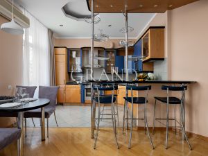 Лот 54340. Наталья Черных.Атмосферная квартира в районе Патриарших прудов в малоквартирном фасадном особняке. В подъезде всего 6 квартир. Выполнен дорогой качественный ремонт из натуральных материалов: мрамор, дуб, гипс. Установлена система кондиционирования, немецкая бытовая техника, подогрев пола, сантехника Villeroy&Boch. Высокие потолки 3.2 метра. Все новое, никто не жил. Грамотная планировка, разделена на 2 зоны: гостевая зона: просторная гостиная, кухня, гостевой санузел, и жилая зона: основная спальня с гардеробной комнатой, детская/кабинет, ванная комната с окном. Квартира ориентирована на две стороны, окна спален выходят во двор. Красивый подъезд с новым ремонтом, отреставрированный фасад здания. Парковка в закрытом дворе. Патриаршие пруды престижный район и любимое место отдыха многих москвичей, центр культурной жизни большого города. Здесь сосредоточено множество модных ресторанов, баров и кафе, уютных скверов. В пешей доступности от дома находится одна из самых известных и престижных школ Москвы, несколько детских садов, поликлиники для детей и взрослых. Пешком можно дойти сразу до нескольких столичных театров имени Моссовета, МХАТ, Театра на Малой Бронной, Театра имени Пушкина, также рядом находятся театр Ленком, Сатиры, концертный зал имени Чайковского, музеи.Бонус партнерам 50%.Есть презентации в pdf на русском или английском для партнеров. Член ассоциации агентств элитной недвижимости AREA.