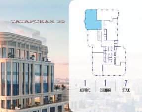 Продается просторная квартира площадью 153.10 м2 в жилом комплексе ТАТАРСКАЯ, 35. Квартира находится в 1 секции корпуса 1. Этаж 7-й из 20.Квартира без чистовой отделки, с просторной кухней 51.80 м2. Жилая площадь 56.30 м2. Высота потолка от 3.50.ТАТАРСКАЯ, 35 - новая архитектурная доминанта Замоскворечья, достопримечательность на фотопанорамах исторического центра Москвы. Элитный дом, созданный для тех, кто умеет смотреть далеко вперед, мыслить масштабно и воплощать собственный сценарий жизни.Вдохновляющие прогулки по променаду набережной, в уютных переулках, в парке ''Зарядье'', в Михайловском саду и Репинском сквере. Наслаждение высоким искусством в Третьяковской галерее, Доме Музыки, театральном музее им. А.А. Бахрушина, театре на Малой Ордынке. За окнами - Кремль, высотка на Котельнической, панорамы Замоскворечья и острова Балчуг, огни Садового кольца.Собственные спорт-румы, детская, репетиторская, бьюти-пространства, деловое пространство с коворкингом, переговорной и сигарной. Собственный трехуровневый фитнесс-центр с бассейном, тренажерным залом, сауной, хаммамом, массажным кабинетом. Площадь двора - 1,8 га, половина территории покрыта деревьями, кустарниками и лужайками.Дом расположен внутри Садового кольца - отсюда в считанные минуты можно добраться до важнейших мест столицы: достопримечательностей и парков, театров и ресторанов, деловых и административных центров. 7 минут до Кремля на автомобиле, 15 минут до Третьяковской галереи и 8 минут до Садового кольца пешком.Планировочные решения и визуализации предварительны, возможны изменения.