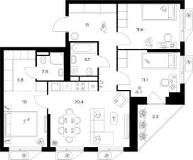 3-к, Саларьево Парк ЖК, 74.9 Показать на карте