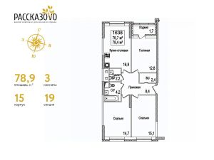 Продается 3-комнатная квартира в ЖК Рассказово на 12 этаже. Общая площадь квартиры составляет 78,9 кв.м. Квартира без отделки.Уникальность комплекса в его архитектуре все дома построены в стиле Москвы 30-х годов, создавая неповторимое ощущение присутствия романтики того времени.Роскошные входные группы, отделанные мрамором, с высотой потолков 4,5 м, белыми лепными карнизами и стойкой ресепшн с авторской отделкой создают атмосферу уюта, полностью отражая дух и воплощение уникальной архитектурной концепции 30-40 годов, являясь ее логическим продолжением.Преимущество локации заключается в благоприятной экологической обстановке с трех сторон комплекс окружен Ульяновским лесопарком и отсутствием промышленных предприятий, обеспечивая жителей чистым воздухом. До ближайшей станции метро ''Рассказовка'' всего 850 метров, а до центра можно доехать за 30 минут.Проект предполагает комплексное освоение территории, создание комфортной жилой застройки с развитой качественной инфраструктурой:- большое количество парковочных мест предусмотрены как закрытые подземные паркинги, так и крытые наземные парковки с дополнительно выделенными открытыми парковочными местами возле домов,- круглосуточно охраняемая территория, закрытая от посторонних для безопасности каждого жителя,- двор-парк без машин, где можно не переживать за играющих детей,- социальные объекты: своя поликлиника, детские сады и школы,- здоровая среда: воркаут - площадки, обустроенные места для занятий спортом на свежем воздухе, живописные места для утренних пробежек, велосипедные маршруты любой сложности,- благоустроенная набережная лесного озера для тихих прогулок или семейного отдыха,- коммерческие объекты действующие магазины, кафе и салоны красоты.Узнайте больше о комплексе приезжайте на просмотр, записавшись по телефону. Менеджер вас встретит, угостит вкусным кофе, проведет по территории и покажет квартиру.