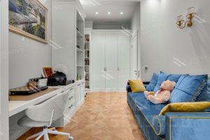 Просторная светлая квартира площадью 130.2 кв. м с окнами на две стороны. В кухне-гостиной они обращены в направлении Кремля и выходят в живописный внутренний двор, а панорамное остекление и моллированне окна улучшают видовые характеристики квартиры. Продуманная планировка позволяет разместить три спальные комнаты с отдельными гардеробными и санузлами, в одном из которых предусмотрено окно.''Лаврушинский'' - бескомпромиссный дом с лучшими видами на Кремль. Благодаря расположению всего в одном километре от Кремля, своей высоте и малоэтажной окружающей застройке, из квартир открываются поразительные прямые виды на главные достопримечательности центра Москвы, включая храм Христа Спасителя и собор Василия Блаженного. Расположение в глубине квартала, посередине парка, дает удивительное для центра ощущение тишины и простора.На закрытой территории находится самый большой на элитном рынке собственный ландшафтный парк площадью 1,4 га с фонтаном, ручьём, зонами для воркаута и тихого отдыха. KIDS LAB: развивающая детская площадка на улице и игровая комната в помещении. FIT LAB: фитнес-клуб с 25-метровым бассейном, beauty room, доступные только для жителей.В проекте уникальный выбор квартир с просторными балконами, пентхаусов с террасами, бассейнами и каминами, максимальными видовыми характеристиками, а также роскошных вилл. Всего - 153 квартиры и 101 продуманное планировочное решение. Высота потолков составляет от 3,5 до 8,25 м. В доме предусмотрен 2х-уровневый паркинг на 279 машино-места.В доме предусмотрен полный комплекс систем комфорта, включающий приточно-вытяжную вентиляцию с тонкой фильтрацией с принципом забора воздуха с высоты 50 метров для повышения продолжительности жизни, отдельный сервисный лифт для обслуживающего персонала и другие современные системы.