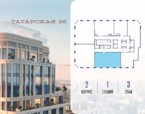Продается просторная квартира площадью 110.30 м2 в жилом комплексе ТАТАРСКАЯ, 35. Квартира находится в 1 секции корпуса 2. Этаж 3-й из 19.Квартира без чистовой отделки, с просторной кухней 27.00 м2. Жилая площадь 42.50 м2. Высота потолка от 3.50.ТАТАРСКАЯ, 35 - новая архитектурная доминанта Замоскворечья, достопримечательность на фотопанорамах исторического центра Москвы. Элитный дом, созданный для тех, кто умеет смотреть далеко вперед, мыслить масштабно и воплощать собственный сценарий жизни.Вдохновляющие прогулки по променаду набережной, в уютных переулках, в парке ''Зарядье'', в Михайловском саду и Репинском сквере. Наслаждение высоким искусством в Третьяковской галерее, Доме Музыки, театральном музее им. А.А. Бахрушина, театре на Малой Ордынке. За окнами - Кремль, высотка на Котельнической, панорамы Замоскворечья и острова Балчуг, огни Садового кольца.Собственные спорт-румы, детская, репетиторская, бьюти-пространства, деловое пространство с коворкингом, переговорной и сигарной. Собственный трехуровневый фитнесс-центр с бассейном, тренажерным залом, сауной, хаммамом, массажным кабинетом. Площадь двора - 1,8 га, половина территории покрыта деревьями, кустарниками и лужайками.Дом расположен внутри Садового кольца - отсюда в считанные минуты можно добраться до важнейших мест столицы: достопримечательностей и парков, театров и ресторанов, деловых и административных центров. 7 минут до Кремля на автомобиле, 15 минут до Третьяковской галереи и 8 минут до Садового кольца пешком.Планировочные решения и визуализации предварительны, возможны изменения.