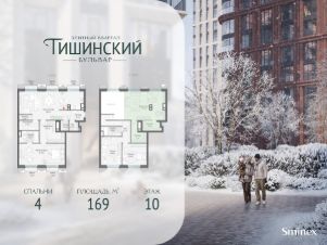 В продаже 4-комнатная квартира квартира в элитном квартале ''Тишинский бульвар''.Общая площадь квартиры - 169.00 кв.м. Этаж 10 из 11.Корпус К4С2.''Тишинский бульвар'' - тихий зелёный элитный квартал на Тишинке, в престижном и комфортном районе центра Москвы. В нём создан уникальный для элитного дома прогулочный бульвар в своём огромном парке 1,9 га. В парке оборудованы зоны для активного и тихого отдыха, крытые галереи, приватные зелёные комнаты, многофункциональная спортивная площадка, воркаут-зона, детская площадка, сухой фонтан, ручей.В пешей доступности Римско-католический кафедральный собор. Всего в полутора километрах от квартала находятся Патриаршие пруды - излюбленное место для летних прогулок, воскресных бранчей и романтических ужинов. Белая площадь расположена ещё ближе - на расстоянии 1,2 километра. Это точка концентрации деловой жизни и модных ресторанов.В ''Тишинский бульваре'' только для жителей и их гостей создан уникальный для элитного дома прогулочный бульвар в собственном огромном парке площадью 2,1 га, который занимает 70% территории квартала. Бульвар проходит через весь квартал и объединяет в общее пространство три двора: Кленовый, Рябиновый и Ивовый.В парке созданы крытые галереи и приватные зелёные комнаты для отдыха и медитаций в любую погоду. Насыщенное озеленение многолетними растениями с разными периодами цветения сохраняет территорию квартала красивой круглый год.В квартале насыщенная инфраструктура только для жителей, включая Clubhouse. Здесь оборудованы пространства для здорового образа жизни по стандарту FIT LAB: в парке - многофункциональная спортивная площадка, воркаут-зона, место для занятий йогой и медитации, бесплатный фитнес-клуб с бассейном. Для маленьких жителей доступны детская площадка и игровая комната по стандарту KIDS LAB.Дома оснащены самыми полными и лучшими системами.