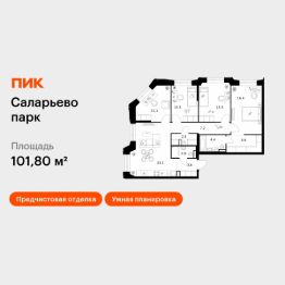 Продаётся 4-комн. квартира площадью 101,8 кв.м на 2 этаже 23 этажного дома (Корпус 69.1, Секция 1) проекта ПИК Саларьево парк. Светлый просторный подъезд на уровне земли, функциональная планировка, большие окна, предчистовая отделка. Жилой район ''Саларьево парк'' расположен в Новой Москве, в четырёх километрах от МКАД по Киевскому шоссе. Две станции метро: ''Саларьево'' и ''Филатов луг'', — находятся в пешей доступности от проекта. Дойти до них можно за 510 минут. В квартале уже создана качественная среда, где есть абсолютно всё для полноценной жизни, работы и отдыха. Благодаря удобному расположению проекта всё важное будет рядом: детские сады, школы, кафе и рестораны, шопинг в торговых центрах, фитнес и даже аэропорт. Все корпуса в квартале гармонично сочетаются, образуя единую городскую среду. Между собой их объединяет невысокая этажность и натуральная цветовая гамма. Здесь приятно гулять и проводить время на улице всей семьёй. В ''Саларьево парке'' создана уникальная образовательная среда, включающая в себя шесть школ, рассчитанных на 6 250 учеников. Две из них уже открыты, их посещает 2 300 детей. Также на территории ''Саларьево парка'' находится 12 детских садов, один из которых с бассейном. Сейчас уже открыты 7 садов. В ''Саларьево парке'' открыта уникальная игровая площадка — PlayHub ''Оригами''. Здесь есть ручей, горка-труба и рельефные холмы. Взрослые смогут отдохнуть в уютном кафе, пока дети играют. Также на территории проекта есть SportHub — большая спортивная зона, разделённая по интересам и возрастам. Здесь можно заниматься разными видами спорта: футболом, баскетболом, волейболом и стритболом. Зимой центральную часть площадки превращают в каток. Во дворах-парках жилого квартала есть места для отдыха, детские и спортивные площадки. На первых этажах домов расположены магазины, кафе и полезные сервисы. Также вблизи проекта есть несколько масштабных торговых центров. До ТЦ ''Саларис'' пять минут пешком, до ''Рио'', Metro Cash & Carry и ''Леруа Мерлен'' — пять минут на автомобиле. Артикул 1023182 (Застройщик ООО ''Специализированный Застройщик ''Тирон'')