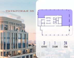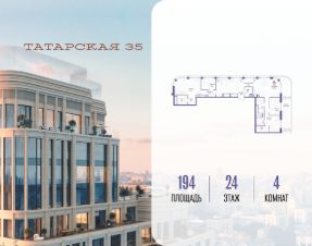 Продается просторная квартира площадью 194.00 м2 в жилом комплексе ТАТАРСКАЯ, 35. Квартира находится в 1 секции корпуса 3. Этаж 24-й из 24.Квартира без чистовой отделки, с просторной кухней 64.60 м2. Жилая площадь 74.20 м2. Высота потолка от 3.50.ТАТАРСКАЯ, 35 - новая архитектурная доминанта Замоскворечья, достопримечательность на фотопанорамах исторического центра Москвы. Элитный дом, созданный для тех, кто умеет смотреть далеко вперед, мыслить масштабно и воплощать собственный сценарий жизни.Вдохновляющие прогулки по променаду набережной, в уютных переулках, в парке ''Зарядье'', в Михайловском саду и Репинском сквере. Наслаждение высоким искусством в Третьяковской галерее, Доме Музыки, театральном музее им. А.А. Бахрушина, театре на Малой Ордынке. За окнами - Кремль, высотка на Котельнической, панорамы Замоскворечья и острова Балчуг, огни Садового кольца.Собственные спорт-румы, детская, репетиторская, бьюти-пространства, деловое пространство с коворкингом, переговорной и сигарной. Собственный трехуровневый фитнесс-центр с бассейном, тренажерным залом, сауной, хаммамом, массажным кабинетом. Площадь двора - 1,8 га, половина территории покрыта деревьями, кустарниками и лужайками.Дом расположен внутри Садового кольца - отсюда в считанные минуты можно добраться до важнейших мест столицы: достопримечательностей и парков, театров и ресторанов, деловых и административных центров. 7 минут до Кремля на автомобиле, 15 минут до Третьяковской галереи и 8 минут до Садового кольца пешком.Планировочные решения и визуализации предварительны, возможны изменения.