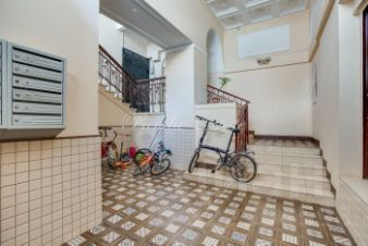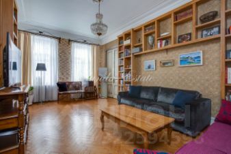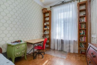 id 9674 Уютная квартира с 3 спальнями. Планировка: прихожая с гардеробной комнатой, большая гостиная, спальня, гостевой санузел, кухня, санузел, спальня, гардеробная комната, спальня. Высокие потолки 3,5 метра, сохранен дореволюционный паркет, отреставрирован. Сохранена оригинальная лепнина. Перепланировок нет. В доме новый лифт, отреставрированная входная группа.