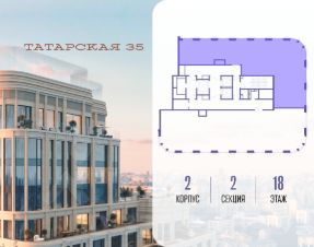 Продается просторная квартира площадью 177.60 м2 в жилом комплексе ТАТАРСКАЯ, 35. Квартира находится в 2 секции корпуса 2. Этаж 18-й из 19.Квартира без чистовой отделки, с просторной кухней 67.40 м2. Жилая площадь 75.00 м2. Высота потолка от 3.50.ТАТАРСКАЯ, 35 - новая архитектурная доминанта Замоскворечья, достопримечательность на фотопанорамах исторического центра Москвы. Элитный дом, созданный для тех, кто умеет смотреть далеко вперед, мыслить масштабно и воплощать собственный сценарий жизни.Вдохновляющие прогулки по променаду набережной, в уютных переулках, в парке ''Зарядье'', в Михайловском саду и Репинском сквере. Наслаждение высоким искусством в Третьяковской галерее, Доме Музыки, театральном музее им. А.А. Бахрушина, театре на Малой Ордынке. За окнами - Кремль, высотка на Котельнической, панорамы Замоскворечья и острова Балчуг, огни Садового кольца.Собственные спорт-румы, детская, репетиторская, бьюти-пространства, деловое пространство с коворкингом, переговорной и сигарной. Собственный трехуровневый фитнесс-центр с бассейном, тренажерным залом, сауной, хаммамом, массажным кабинетом. Площадь двора - 1,8 га, половина территории покрыта деревьями, кустарниками и лужайками.Дом расположен внутри Садового кольца - отсюда в считанные минуты можно добраться до важнейших мест столицы: достопримечательностей и парков, театров и ресторанов, деловых и административных центров. 7 минут до Кремля на автомобиле, 15 минут до Третьяковской галереи и 8 минут до Садового кольца пешком.Планировочные решения и визуализации предварительны, возможны изменения.