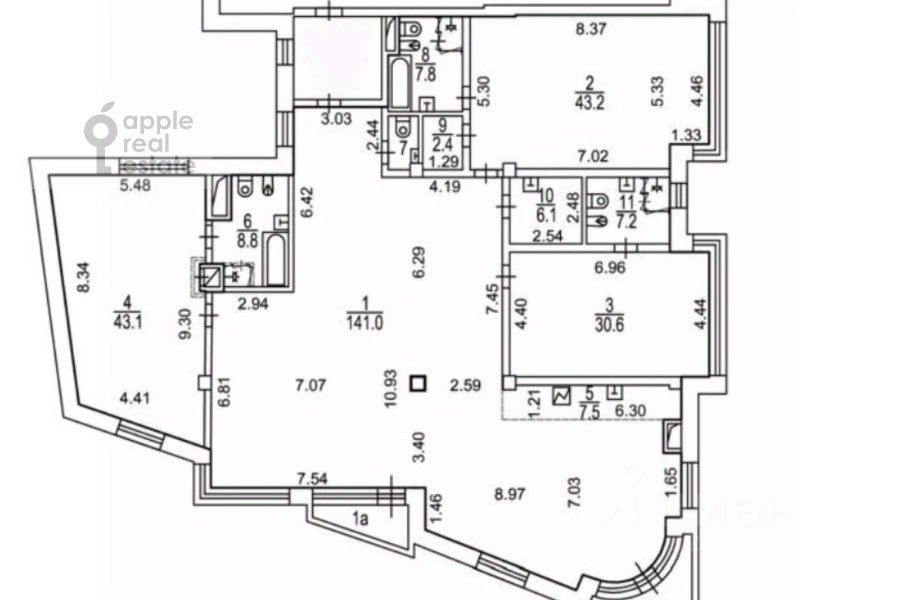 Светлая и просторная квартира площадью 213,4 м² в знаменитом клубном доме на Остоженке — в самом сердце Золотой Мили! Высокие потолки 3,2 метра и окна в пол подчеркивают статусный характер квартиры. Окна ориентированы на 2 стороны: в тихий благоустроенный внутренний двор и в Коробейников переулок. Лот представлен без отделки, чтобы будущий владелец смог воплотить свой дизайн-проект мечты. Планировка позволяет спроектировать до 4-х спален и до 4-х санузлов. О доме: Жилой комплекс Кристалл Хаус располагается в 2 км от Кремля, в престижном районе Хамовники, в локации Золотой мили на Остоженке. Авторская архитектура — от именитого архитектора Юрия Григоряна. Стеклянный фасад и очертания балконов напоминают грани кристалла. Входные группы украшены итальянским камнем и витражами. Дом камерный — всего 67 квартир. 4 дома объединены одним стилобатом. Между корпусами разбит живописный сад с фонтаном, гранитными дорожками и мягким освещением. На территории работает охрана, установлено видеонаблюдение 24/7 и многоступенчатая система контроля. В соседнем доме расположен один из лучших в столице премиум клуб Golden Mile Fitness & SPA площадью 5500 кв м. Для авто — современный подземный паркинг, где дополнительно можно приобрести машино-место. В ближайшем окружении есть все необходимое для комфортной жизни, при этом комплекс расположен в стороне от шумных улиц и офисных центров. Рядом находятся памятники старинной архитектуры, известные прогулочные маршруты по старомосковским улицам, Остоженке и Пречистенке, набережные Москвы-реки. Локация удобна и для пеших прогулок, и для поездок на автомобиле: всего в 400 м от комплекса находится Садовое кольцо, а в 3 км расположен выезд на ТТК. Наша компания состоит в AREA. [Лот #24030]