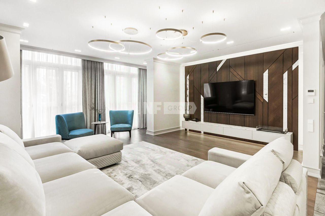 Лот: 97355. Эксклюзивно в продаже только у NF GROUP. В продаже просторный таунхаус с отделкой в жилом комплексе ''Золотые ключи-2'' на Минской улице. Планировка: гостиная-столовая с зоной кухни, 8 спален с собственными ванными и гардеробными, 2 кабинета, тренажерный зал (игровая), вместительная кладовая в цоколе, сауна. Пространство оформлено в классическом стиле с применением натуральных материалов, установлены мебель, бытовая техника и сантехника известных брендов. Окна выходят в тихий зеленый двор. Высота потолка 3 м. Есть наземная парковка перед таунхаусом. ''Золотые ключи-2'' - жилой комплекс в Раменках. Огороженная благоустроенная территория, охрана и видеонаблюдение, удобный выезд на ТТК. Таунхаусы расположены на собственной территории с отдельным въездом. Здравствуйте, я Елена Якушева, брокер международной консалтинговой компании NF GROUP. Подробно расскажу об этой квартире и районе, оперативно организую просмотр и согласую лучшие условия. Участник ассоциации агентств элитной недвижимости AREA