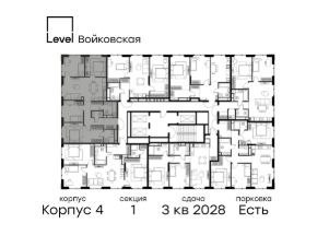 Цена указана с учётом скидки при 100%-й оплате, несубсидированной ипотеке, рассрочке (кроме программы ''Рассрочка 0%'').Продается 4-комнатная квартира площадью 99.10 кв. м с отделкой. Квартира находится на 19 этаже 26-этажного корпуса 4, в новом жилом комплексе бизнес-класса Level Войковская, расположенном рядом с живописным заповедником ''Покровское-Стрешнево'' (застройщик - компания Level Group/Левел групп).Прекрасная транспортная доступность- 7 мин. пешком до станции МЦК ''Балтийская'',- 15 мин. пешком до станции метро ''Войковская'',- 8 мин. на машине до ТТК,- 15 мин. на машине до центра Москвы,- 20 мин. на машине до Москва-Сити. Продуманный архитектурный проект- стильная архитектура от мастерской Фефелова В. В.,- панорамные виды на парки, Химкинское водохранилище и Останкинскую башню,- лобби с высотой потолков до 6,45 метров,- более 20 видов планировочных решений, включая редкие форматы квартир с террасой и увеличенной высотой потолков до 5,42 метров,- 2 варианта дизайнерской отделки в корпусе 4, предлагаются как дополнительная опция к отделке white box: стиль Modern в светлых холодных тонах и стиль Classic в нейтральной бежевой гамме. Квартиры в корпусах 3 и 5 сдаются без отделки. РасположениеLevel Войковская строится в престижном Северном округе Москвы. Развитая инфраструктура и живописная природа переплетаются в единый ансамбль, столь значимый для комфортной жизни.Войковский район окружают парки и набережные. В шаговой доступности - парк ''Покровское-Стрешнево'', не более 15-ти минут на велосипеде занимает путь до Тимирязевского парка и 9-ти минут до парка усадьбы Михалково.Рядом более 60 школ, 75 дошкольных учреждений, 17 государственных и 6 частных вузов, 25 супермаркетов, 4 торговых центра, среди которых ТЦ ''Метрополис'' и ТЦ ''Авиапарк''. Внутренняя инфраструктураНа территории жилого комплекса предусмотрены коммерческие помещения: кафе, ресторан, пекарня и другие сервисы откроются на первых этажах корпусов. Для жителей будет доступен отапливаемый подземный паркинг на 244 машино-места с доступом с любого этажа на лифте. На территории паркинга будет расположено 125 кладовых помещений для хранения сезонного инвентаря. Лобби и благоустройствоДизайн лобби Level Войковская создан совместно с бюро BLANK. Это уютные гостиные, где хочется задержаться. Теплая цветовая гамма, ресепшен, зоны ожидания, лапомойки и гостевые санузлы - каждая деталь превращает лобби в комфортное продолжение вашего дома.1,15 га площади в первых двух этапах строительства отведено под приватный внутренний двор, который спроектирован совместно с бюро ''Правда''. Детские площадки для всех возрастов, спортивные пространства для йоги, воркаута и петанка, уютные зоны для тихого отдыха или работы. Здесь утро начинается с вдохновения, а вечер наполнен приятными моментами. ЛифтыКомфортное перемещение внутри жилого комплекса будут обеспечивать надёжные лифты с доступом в паркинг с жилых этажей. В каждом корпусе предусмотрено по 3 грузопассажирских лифта.