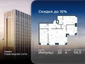 Цена указана с учётом скидки при 100%-й оплате, несубсидированной ипотеке, рассрочке (кроме программы ''Рассрочка 0%'').Продается 4-комнатная квартира площадью 120.40 кв. м без отделки. Квартира находится на 18 этаже 20-этажного корпуса 3, в новом жилом комплексе бизнес-класса Левел Войковская, расположенном рядом с живописным заповедником ''Покровское-Стрешнево'' (застройщик - компания Level Group/Левел групп).Прекрасная транспортная доступность- 7 мин. пешком до станции МЦК ''Балтийская'',- 15 мин. пешком до станции метро ''Войковская'',- 8 мин. на машине до ТТК,- 15 мин. на машине до центра Москвы,- 20 мин. на машине до Москва-Сити. Продуманный архитектурный проект- стильная архитектура от мастерской Фефелова В. В.,- панорамные виды на парки, Химкинское водохранилище и Останкинскую башню,- лобби с высотой потолков до 6,45 метров,- более 20 видов планировок, включая редкие форматы квартир с террасой и увеличенной высотой потолков до 5,42 метров,- 2 варианта дизайнерской отделки в корпусе 4 как дополнительная опция к отделке white box: стиль Modern в светлых холодных тонах и стиль Classic в нейтральной бежевой гамме. Квартиры в корпусах 3 и 5 сдаются без отделки. РасположениеЖилой комплекс Левел Войковская строится в престижном Северном округе Москвы, где развитая инфраструктура и живописная природа переплетаются в единый ансамбль.Войковский район окружают парки и набережные. В шаговой доступности - парк ''Покровское-Стрешнево'', не более 15-ти минут на велосипеде занимает путь до Тимирязевского парка и 9-ти минут до парка усадьбы Михалково.Рядом более 60 школ, 75 дошкольных учреждений, 17 государственных и 6 частных вузов, 25 супермаркетов, 4 торговых центра, среди которых ТЦ ''Метрополис'' и ТЦ ''Авиапарк''. Внутренняя инфраструктураНа территории жилого комплекса предусмотрены коммерческие помещения: кафе, ресторан, пекарня и другие сервисы на первых этажах корпусов. Для жителей будет доступен отапливаемый подземный паркинг на 244 машино-места с доступом с любого этажа на лифте. На территории паркинга будет расположено 125 кладовых помещений для хранения сезонного инвентаря. Лобби и благоустройствоДизайн лобби жилого комплекса Левел Войковская создан совместно с бюро BLANK. Теплая цветовая гамма, ресепшен, зоны ожидания, лапомойки и гостевые санузлы - каждая деталь превращает лобби в комфортное продолжение вашего дома.1,15 га площади в первых двух этапах строительства отведено под приватный внутренний двор, который спроектирован совместно с бюро ''Правда''. Детские площадки для всех возрастов, спортивные пространства для йоги, воркаута и петанка, уютные зоны для тихого отдыха или работы. Здесь утро начинается с вдохновения, а вечер наполнен приятными моментами. ЛифтыКомфортное перемещение внутри жилого комплекса обеспечат надёжные лифты с доступом в паркинг с жилых этажей. В каждом корпусе предусмотрено по 3 грузопассажирских лифта.