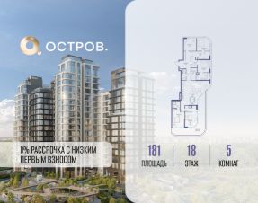 Продаётся многокомнатная квартира от застройщика: общая площадь 180.80 м², жилая 59.90 м², кухня 58.70 м², 11, жилой квартал ''Остров 7'', корпус 3 (7 квартал) (секция 1). срок сдачи: 4-кв. 2025., 2 санузла: 1 раздельный и 1 совмещенный. В жилой зоне 2 больших окна на одну сторону, хорошая инсоляция.Позвоните сейчас и забронируйте квартиру!Купите квартиру в доме у прибрежного парка, в квартале ОСТРОВ.7. Это семь корпусов премиум- и бизнес-класса в одном из лучших мест ОСТРОВА - между бульваром и парком, поблизости от реки. Стильные корпуса имеют узнаваемый вид благодаря бионической пластике фасадов, приподнятых над землей. Для жителей предусмотрены детский клуб, фитнес-рум, коворкинг, переговорные, лаунжи. На крышах устроены видовые общественные пространства с зонами для отдыха и спорта. Двор расположен на двух уровнях: нижний ландшафтный парк и верхняя городская терраса. ОСТРОВ.7 - часть жилого комплекса на западе Москвы, в 15 минутах езды от центра. Это настоящий заповедник посреди большого города, в окружении реки и 650 га заповедников. Здесь все необходимое находится по соседству: от детского сада до супермаркета, от фитнес-зала до серфинг-центра. На территории созданы все условия для отдыха и общения: клубная инфраструктура в домах и дворы-парки, набережные и променады, маршруты для спортсменов, детей и возрастных жителей. В нескольких минутах ходьбы расположена станция метро ''Терехово'' БКЛ. На автомобиле - 10 минут до Москва-Сити и 15 минут до Садового кольца.