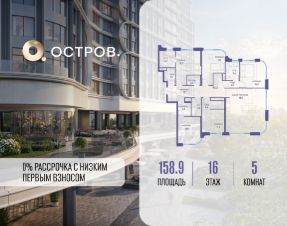Продаётся многокомнатная квартира от застройщика: общая площадь 158.90 м², жилая 67.70 м², кухня 38.00 м², 16, жилой квартал ''Остров 7'', корпус 2 (7 квартал) (секция 1). срок сдачи: 4-кв. 2025., 3 санузла: 3 совмещенных. В жилой зоне 2 больших окна на одну сторону, хорошая инсоляция.Позвоните сейчас и забронируйте квартиру!Купите квартиру в доме у прибрежного парка, в квартале ОСТРОВ.7. Это семь корпусов премиум- и бизнес-класса в одном из лучших мест ОСТРОВА - между бульваром и парком, поблизости от реки. Стильные корпуса имеют узнаваемый вид благодаря бионической пластике фасадов, приподнятых над землей. Для жителей предусмотрены детский клуб, фитнес-рум, коворкинг, переговорные, лаунжи. На крышах устроены видовые общественные пространства с зонами для отдыха и спорта. Двор расположен на двух уровнях: нижний ландшафтный парк и верхняя городская терраса. ОСТРОВ.7 - часть жилого комплекса на западе Москвы, в 15 минутах езды от центра. Это настоящий заповедник посреди большого города, в окружении реки и 650 га заповедников. Здесь все необходимое находится по соседству: от детского сада до супермаркета, от фитнес-зала до серфинг-центра. На территории созданы все условия для отдыха и общения: клубная инфраструктура в домах и дворы-парки, набережные и променады, маршруты для спортсменов, детей и возрастных жителей. В нескольких минутах ходьбы расположена станция метро ''Терехово'' БКЛ. На автомобиле - 10 минут до Москва-Сити и 15 минут до Садового кольца.