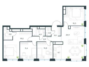 Продаётся многокомнатная квартира от застройщика: общая площадь 190.40 м², жилая 69.30 м², кухня 49.00 м², 20, жилой квартал ''Остров 7'', корпус 7 (7 квартал) (секция 2). срок сдачи: 4-кв. 2025., 4 санузла: 1 раздельный и 3 совмещенных. В жилой зоне 2 больших окна на одну сторону, хорошая инсоляция.Позвоните сейчас и забронируйте квартиру!Купите квартиру в доме у прибрежного парка, в квартале ОСТРОВ.7. Это семь корпусов премиум- и бизнес-класса в одном из лучших мест ОСТРОВА - между бульваром и парком, поблизости от реки. Стильные корпуса имеют узнаваемый вид благодаря бионической пластике фасадов, приподнятых над землей. Для жителей предусмотрены детский клуб, фитнес-рум, коворкинг, переговорные, лаунжи. На крышах устроены видовые общественные пространства с зонами для отдыха и спорта. Двор расположен на двух уровнях: нижний ландшафтный парк и верхняя городская терраса. ОСТРОВ.7 - часть жилого комплекса на западе Москвы, в 15 минутах езды от центра. Это настоящий заповедник посреди большого города, в окружении реки и 650 га заповедников. Здесь все необходимое находится по соседству: от детского сада до супермаркета, от фитнес-зала до серфинг-центра. На территории созданы все условия для отдыха и общения: клубная инфраструктура в домах и дворы-парки, набережные и променады, маршруты для спортсменов, детей и возрастных жителей. В нескольких минутах ходьбы расположена станция метро ''Терехово'' БКЛ. На автомобиле - 10 минут до Москва-Сити и 15 минут до Садового кольца.