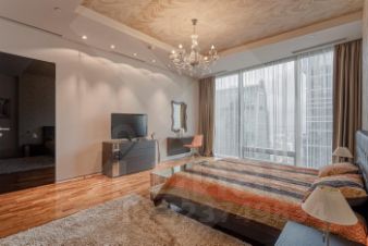 ОПИСАНИЕ КВАРТИРЫ 4 ЭТАЖ, 200 м²В квартире выполнена премиальная дизайнерская отделка сиспользованием высококачественных и натуральных материалов,таких как: натуральный мрамор, шпон дуба, сатинированная сталь,декоративная штукатурка.ПЛАНИРОВОЧНОЕ РЕШЕНИЕ:- Кухня гостиная с обеденной зоной (58,32 кв.м),- Мастер спальня со своим санузлом (душевая) и гардеробнойкомнатой (44,23 кв.м),- Мастер спальня со своим санузлом (ванна) и гардеробнойкомнатой (19,43 кв.м),- Спальня со своим санузлом (душевая) (19,7 кв.м),- Кабинет/спальня (14,35 кв.м),- Постирочная (4,03 кв.м),- Гостевой санузел (3,71 кв.м),- Холл, коридор (24,25 кв.м).Квартира полностью укомплектована бытовой техникой и мебелью.Техника: Miele, Liebherr,Мебель: Minotti, FlexForm, Poliform, Cattelan ItaliaСантехника: Gessi, Omoikiri, Сleo, Salini.Освещение: Центр свет, Astro lighting, CVL Luminaires, Aromas DelCampo, Foscarini, Vibia, Marset.- двери скрытого монтажа Union,- напольные покрытия (инженерная доска 18 мм, дуб, мрамор),- ковры Bo Concept,- текстиль (Итальянские ткани, индивидуальный пошив),- электрофурнитура Jung.ТЕХНИЧЕСКИЕ ХАРАКТЕРИСТИКИ- индивидуальное кондиционирование Daikin,- форсуночная система увлажнения UniverseDIY,- общедомовая система приточно-вытяжной вентиляции,- система защиты от протечек Neptun,- шумоизоляция (полы, стены, потолок).О КОМПЛЕКСЕ Жилой комплекс премиум-класса в Хамовниках, рядом с парком имени Мандельштама. Состоитиз пяти корпусов переменной этажности, два из которых с пентхаусами.Внутри комплекса есть СПА-центр и фитнес-клуб с бассейном, английский мужской клуб, детская комната, клубный ресторан с доставкой еды, рестораны Москвич и Black Market, музей ретроавтомобилей Автовилль.