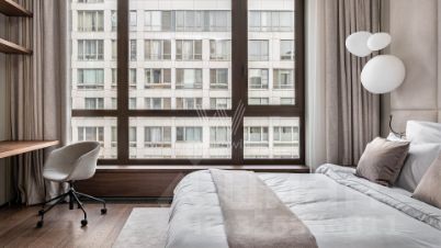 ЛОТ 9583. Предлагается квартира в жилом доме класса DeLuxe. Входная группа отделана натуральным мрамором, имеется охрана и видеонаблюдение по периметру, огороженная территория, детская площадка, двухуровневая подземная парковка, (за квартирой закреплены 2 м\м). Для жильцов предусмотрены свой тренажерный зал, бассейн 5х14 метров, сауна, комната ''общих собраний'', детская комната с выходом на площадку во внутреннем дворе. Высота потолка 3,4 м. За счет высоких потолков и большого количества окон в пол квартира очень светлая, и наполнена воздухом. Оснащена приточно-вытяжной вентиляцией, индивидуальным кондиционированием. Стеклопакеты повышенной шумоизоляцией, конструкции рам из массива дуба.Метриум Премиум - участник ассоциации агентств элитной недвижимости AREA.