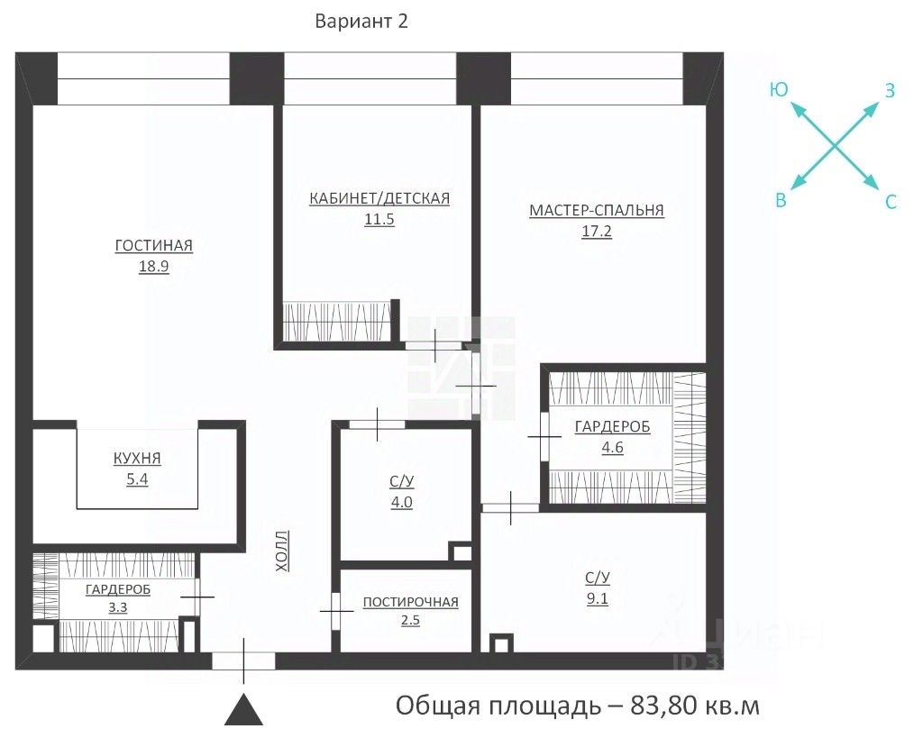 83 м² · Этаж 17 из 32