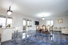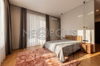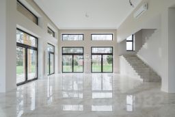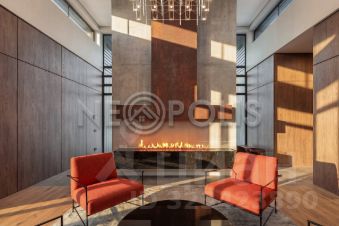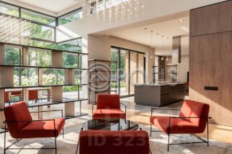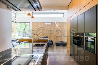 Лот 102519. Эксклюзив Vesco Realty. Коттеджный поселок ''Усадьба Бергов''Современный двухэтажный дом 735 кв.м под чистовую отделку на участке 34 сот в клубном элитном поселке ''Усадьба Бергов'' в 23 км от МКАД на Киевском шоссе. Скоростной доступ по платной М-1 трассе Северный обход Одинцова и проспекту Багратиона от Москва-Сити.Главная точка притяжения поселка - благоустроенная набережная реки Десна протяженностью почти 600 метров.В доме 5 спален (одна из них - на первом этаже), 6 с/у, изолированная кухня, столовая-гостиная с камином, спа-комплекс с бассейном, кабинет, спортзал, гараж на 2 м/м и 2 шикарные террасы. Высокие потолки: первый этаж 4,5 м в черноте, второй 3,5. Панорамные окна, плоская крыша. Дом расположен в центре поселка, на возвышенности. Из окон и с террас открываются живописные виды на водонапорную башню и исторический парк. Территория Новой Москвы, столичная прописка.МАТЕРИАЛЫ СТРОИТЕЛЬСТВАДом кирпичный, фундамент - ж/б плита, облицовка - керамический кирпич. В доме выполнены все черновые отделочные работы: установлены межкомнатные перегородки, все инженерные системы разведены по дому (электричество, отопление, водоснабжение), сделана подводка под сантехнику. В нескольких помещениях выполнена чистовая отделка.КОММУНИКАЦИИВодоснабжение и канализация - центральные, городские.Газ - магистральный (оборудована котельная, котел Buderus 175 кВт).Электричество: есть, подключено.Ливневая канализация: проложена по улицам поселка.ПЛАНИРОВКА1-й этаж: прихожая, гардеробная, кабинет, гостевая спальня с ванной комнатой и санузлом, гостевой с/у, кухня с кладовой, столовая с выходом на террасу, гостиная с камином, постирочная, СПА-зона (бассейн с выходом на террасу, сауна, с/у,), гараж (2 м/м).2-й этаж: мастер-блок (43 кв.м) со спальней, гардеробной и ванной комнатой, 3 детские (16, 19 и 29 кв.м) и 2 с/у (4 и 8 кв.м). Выходы на террасы с видом на водонапорную башню из холла и из мастер-спальни.УЧАСТОКНа участке 34 сотки выполнен ландшафтный дизайн - высажен газон, сосны, ели, декоративные растения, ''живая изгородь'' из туй, проложены тропинки. Площадка перед гаражом выполнена из брусчатки. Есть водостоки и дренажная система.ПОСЕЛОККП ''Усадьба Бергов'' построен в едином архитектурном стиле по мотивам Ф.Л. Райта. При проектировании и строительстве предусмотрен высокий уровень комфорта и качества жизни: большие участки по 20-50 соток, продуманная посадка домов, широкие освещенные улицы с мягкими обзорными примыканиями и тихими тупиками.Поселок камерный: на площади 17 га расположено 34 домовладения. Большая часть домов построена, 16 семей проживают постоянно, еще 5 домов - в стадии активной отделки. На территории поселка расположено 4 объекта культурного наследия (водонапорная башня, две Усадьбы и парк с вековыми деревьями), 6,5 га общественных территорий, многофункциональная спортивная площадка, детский игровой комплекс, домик для йоги, причал, беседка для отдыха и многочисленные зоны отдыха с лавочками, лежаками и даже гамаком. Пешеходный закольцованный маршрут по территории поселка, большая часть которого пролегает по парковым зонам, составляет 1600 метров. На благо и в интересах жителей работает профессиональная служба эксплуатации. Для охраны организованы: контрольно-пропускной пункт, система видеонаблюдения, постоянное патрулирование территории. Усадьба Бергов входит в состав п