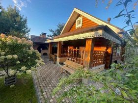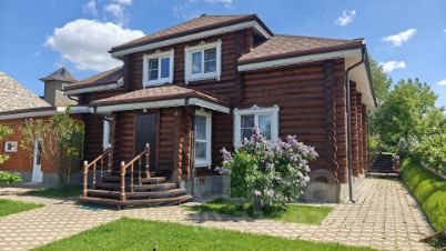 Код объекта: 1604917.Добротный бревенчатый дом 154 кв.м на участке 15 соток в Новой Москве с русской баней и гостевым домом в СНТ Поиск-1, рядом с посёлком Кувекино и Евсеево. Хорошее транспортное сообщение с Москвой - новая дорога, проспект Славского, соединяет Калужское и Симферопольское шоссе, автобусом 906, остановка в 5 минутах, можно доехать до Ватутинок или Троицка или до МЦД Астафьево, где развита вся необходимая инфраструктура.* Дом построен в 2009 году из рубленого бревна с протеской (не снят верхний защитный слой древесины) добротно, со вкусом и любовью.* На 1-м этаже гостиная объединена с кухней 40 кв. м в центре которой большой камин, отделанный мраморной плиткой. Здесь же на первом этаже комната отдыха 13м с парилкой 4м и душевой 4м, гостевой санузел, техническая комната. Вокруг дома большая угловая веранда 13м с прекрасным видом на участок, навес для 2-х машин + 1 гостевое место.* На 2-м этаже 3 уютные спальни 19м,14м,13м с мансардными окнами, и удобной ванной комнатой с окном, удобная лестница, есть чердак для хранения, крыша хорошо утеплена, кровля металло-черепица.* На участке искусственный пруд 8м*4м*2,5м с мостиком, создает уют и прекрасную атмосферу, выложен каучуковой пленкой. Водопад работает от насоса в противоположной части, который обогащает воду кислородом, что поддерживает её в хорошем состоянии. Поэтому в пруду водятся караси и растут нимфеи, кубышки, которые прекрасно переносят зиму за счет правильной глубины. Зона барбекю и костровая, где уютно посидеть вечером у огня.На участке порядка 40 туй, 5 видов можжевельников, голубая ель, 2 обычные ели, 2 дуба, 5 берез, 5 рододендронов разных видов, бордюры из самшита, лилейники разных видов, голубика, смородина красная и черная, виноград изабелла, малина, 5 яблонь, 3 из них колоновидные.* Коммуникации - магистральный газ, скважина - 76м, фильтр грубой очистки, дальше в расширительный бак 200 м3, баллон обогащения кислородом, фильтр обезжелезывания, емкость смягчения воды, фильтр тонкой очистки, для питьевой воды стоит отдельный фильтр под раковиной.На участке установлен Топаз на 5 точек, после прохождения очистки вода попадает в технический колодец, из которого может использоваться для полива, хороший естественный дренажа, так как участки находятся на возвышенности.* На 6 сотках находится каркасный доммастерская обложен кирпичом, внутри обшит вагонкой, покрыт шифером, отапливается электрическими обогревателями, для хранения садовой техники, сезонной мебели, велосипедов и т.д., хозблок и беседка.* Большие газоны позволяют играть в бадминтон, волейбол, крокет и боче.* Проведена юридическая экспертиза МИЭЛЬ, 2 собственника, без обременений, более 5 лет, свободная продажа,