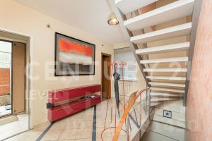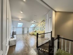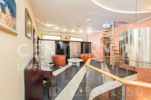 Лот 102519. Эксклюзив Vesco Realty. Коттеджный поселок ''Усадьба Бергов''Современный двухэтажный дом 735 кв.м под чистовую отделку на участке 34 сот в клубном элитном поселке ''Усадьба Бергов'' в 23 км от МКАД на Киевском шоссе. Скоростной доступ по платной М-1 трассе Северный обход Одинцова и проспекту Багратиона от Москва-Сити.Главная точка притяжения поселка - благоустроенная набережная реки Десна протяженностью почти 600 метров.В доме 5 спален (одна из них - на первом этаже), 6 с/у, изолированная кухня, столовая-гостиная с камином, спа-комплекс с бассейном, кабинет, спортзал, гараж на 2 м/м и 2 шикарные террасы. Высокие потолки: первый этаж 4,5 м в черноте, второй 3,5. Панорамные окна, плоская крыша. Дом расположен в центре поселка, на возвышенности. Из окон и с террас открываются живописные виды на водонапорную башню и исторический парк. Территория Новой Москвы, столичная прописка.МАТЕРИАЛЫ СТРОИТЕЛЬСТВАДом кирпичный, фундамент - ж/б плита, облицовка - керамический кирпич. В доме выполнены все черновые отделочные работы: установлены межкомнатные перегородки, все инженерные системы разведены по дому (электричество, отопление, водоснабжение), сделана подводка под сантехнику. В нескольких помещениях выполнена чистовая отделка.КОММУНИКАЦИИВодоснабжение и канализация - центральные, городские.Газ - магистральный (оборудована котельная, котел Buderus 175 кВт).Электричество: есть, подключено.Ливневая канализация: проложена по улицам поселка.ПЛАНИРОВКА1-й этаж: прихожая, гардеробная, кабинет, гостевая спальня с ванной комнатой и санузлом, гостевой с/у, кухня с кладовой, столовая с выходом на террасу, гостиная с камином, постирочная, СПА-зона (бассейн с выходом на террасу, сауна, с/у,), гараж (2 м/м).2-й этаж: мастер-блок (43 кв.м) со спальней, гардеробной и ванной комнатой, 3 детские (16, 19 и 29 кв.м) и 2 с/у (4 и 8 кв.м). Выходы на террасы с видом на водонапорную башню из холла и из мастер-спальни.УЧАСТОКНа участке 34 сотки выполнен ландшафтный дизайн - высажен газон, сосны, ели, декоративные растения, ''живая изгородь'' из туй, проложены тропинки. Площадка перед гаражом выполнена из брусчатки. Есть водостоки и дренажная система.ПОСЕЛОККП ''Усадьба Бергов'' построен в едином архитектурном стиле по мотивам Ф.Л. Райта. При проектировании и строительстве предусмотрен высокий уровень комфорта и качества жизни: большие участки по 20-50 соток, продуманная посадка домов, широкие освещенные улицы с мягкими обзорными примыканиями и тихими тупиками.Поселок камерный: на площади 17 га расположено 34 домовладения. Большая часть домов построена, 16 семей проживают постоянно, еще 5 домов - в стадии активной отделки. На территории поселка расположено 4 объекта культурного наследия (водонапорная башня, две Усадьбы и парк с вековыми деревьями), 6,5 га общественных территорий, многофункциональная спортивная площадка, детский игровой комплекс, домик для йоги, причал, беседка для отдыха и многочисленные зоны отдыха с лавочками, лежаками и даже гамаком. Пешеходный закольцованный маршрут по территории поселка, большая часть которого пролегает по парковым зонам, составляет 1600 метров. На благо и в интересах жителей работает профессиональная служба эксплуатации. Для охраны организованы: контрольно-пропускной пункт, система видеонаблюдения, постоянное патрулирование территории. Усадьба Бергов входит в состав п