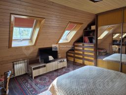 Код объекта: 1604917.Добротный бревенчатый дом 154 кв.м на участке 15 соток в Новой Москве с русской баней и гостевым домом в СНТ Поиск-1, рядом с посёлком Кувекино и Евсеево. Хорошее транспортное сообщение с Москвой - новая дорога, проспект Славского, соединяет Калужское и Симферопольское шоссе, автобусом 906, остановка в 5 минутах, можно доехать до Ватутинок или Троицка или до МЦД Астафьево, где развита вся необходимая инфраструктура.* Дом построен в 2009 году из рубленого бревна с протеской (не снят верхний защитный слой древесины) добротно, со вкусом и любовью.* На 1-м этаже гостиная объединена с кухней 40 кв. м в центре которой большой камин, отделанный мраморной плиткой. Здесь же на первом этаже комната отдыха 13м с парилкой 4м и душевой 4м, гостевой санузел, техническая комната. Вокруг дома большая угловая веранда 13м с прекрасным видом на участок, навес для 2-х машин + 1 гостевое место.* На 2-м этаже 3 уютные спальни 19м,14м,13м с мансардными окнами, и удобной ванной комнатой с окном, удобная лестница, есть чердак для хранения, крыша хорошо утеплена, кровля металло-черепица.* На участке искусственный пруд 8м*4м*2,5м с мостиком, создает уют и прекрасную атмосферу, выложен каучуковой пленкой. Водопад работает от насоса в противоположной части, который обогащает воду кислородом, что поддерживает её в хорошем состоянии. Поэтому в пруду водятся караси и растут нимфеи, кубышки, которые прекрасно переносят зиму за счет правильной глубины. Зона барбекю и костровая, где уютно посидеть вечером у огня.На участке порядка 40 туй, 5 видов можжевельников, голубая ель, 2 обычные ели, 2 дуба, 5 берез, 5 рододендронов разных видов, бордюры из самшита, лилейники разных видов, голубика, смородина красная и черная, виноград изабелла, малина, 5 яблонь, 3 из них колоновидные.* Коммуникации - магистральный газ, скважина - 76м, фильтр грубой очистки, дальше в расширительный бак 200 м3, баллон обогащения кислородом, фильтр обезжелезывания, емкость смягчения воды, фильтр тонкой очистки, для питьевой воды стоит отдельный фильтр под раковиной.На участке установлен Топаз на 5 точек, после прохождения очистки вода попадает в технический колодец, из которого может использоваться для полива, хороший естественный дренажа, так как участки находятся на возвышенности.* На 6 сотках находится каркасный доммастерская обложен кирпичом, внутри обшит вагонкой, покрыт шифером, отапливается электрическими обогревателями, для хранения садовой техники, сезонной мебели, велосипедов и т.д., хозблок и беседка.* Большие газоны позволяют играть в бадминтон, волейбол, крокет и боче.* Проведена юридическая экспертиза МИЭЛЬ, 2 собственника, без обременений, более 5 лет, свободная продажа,