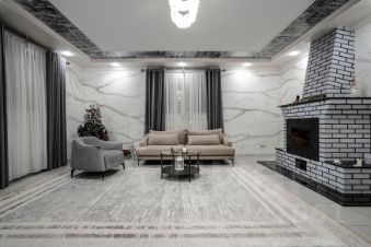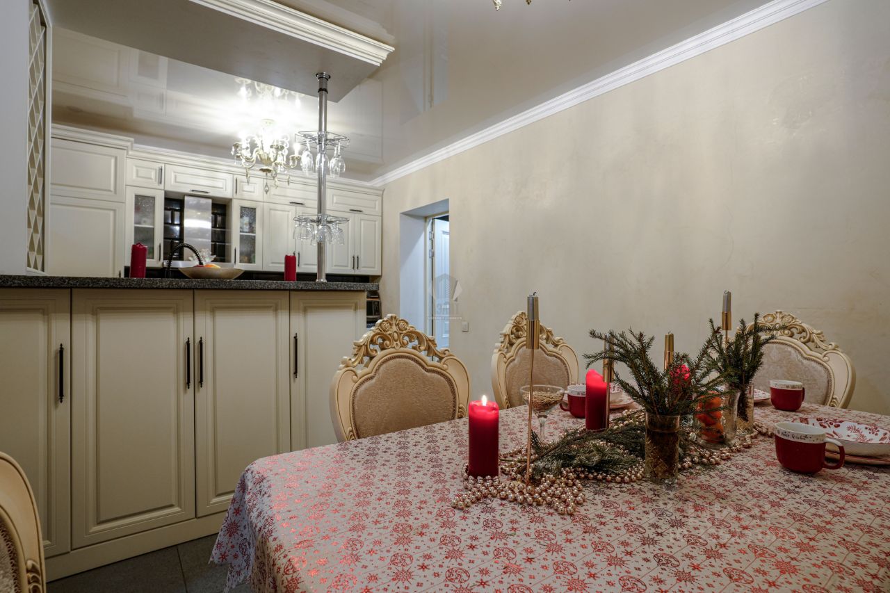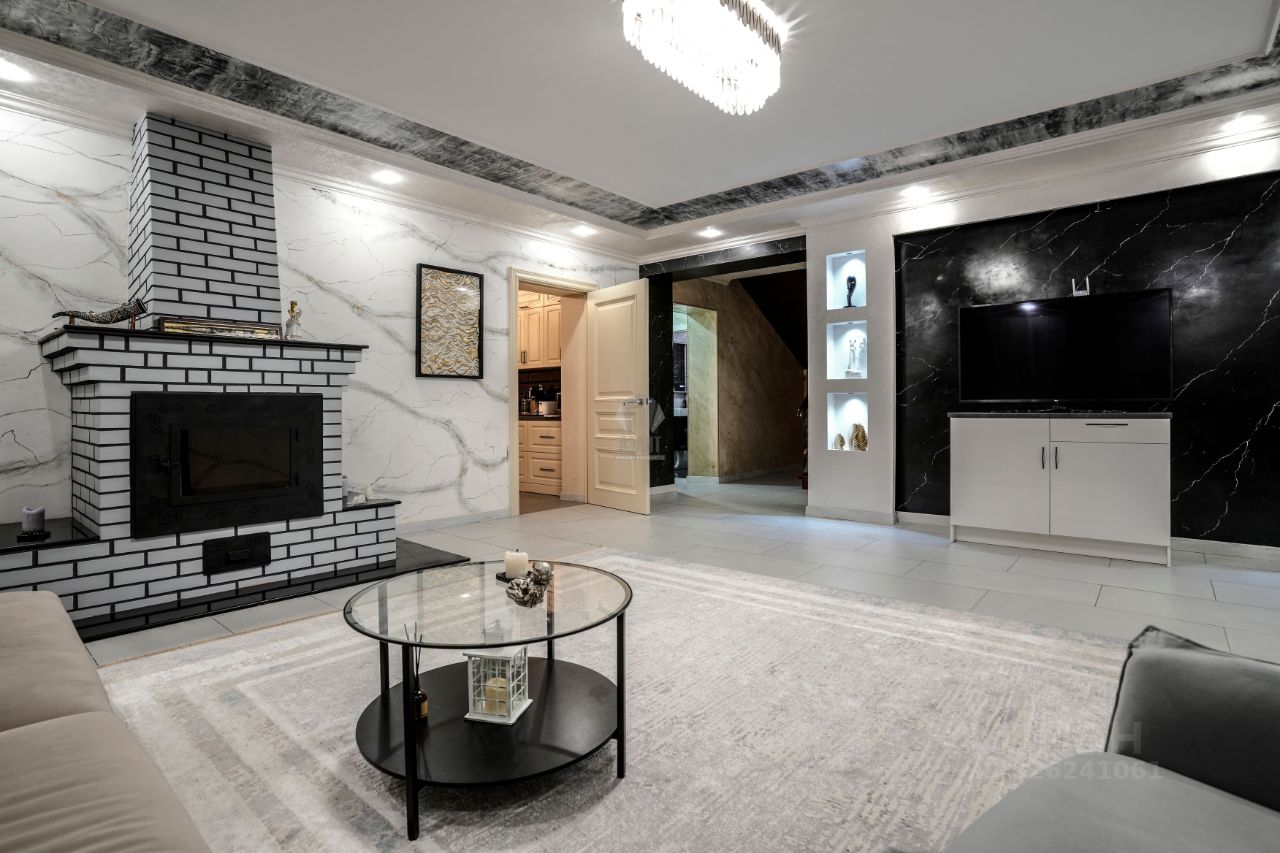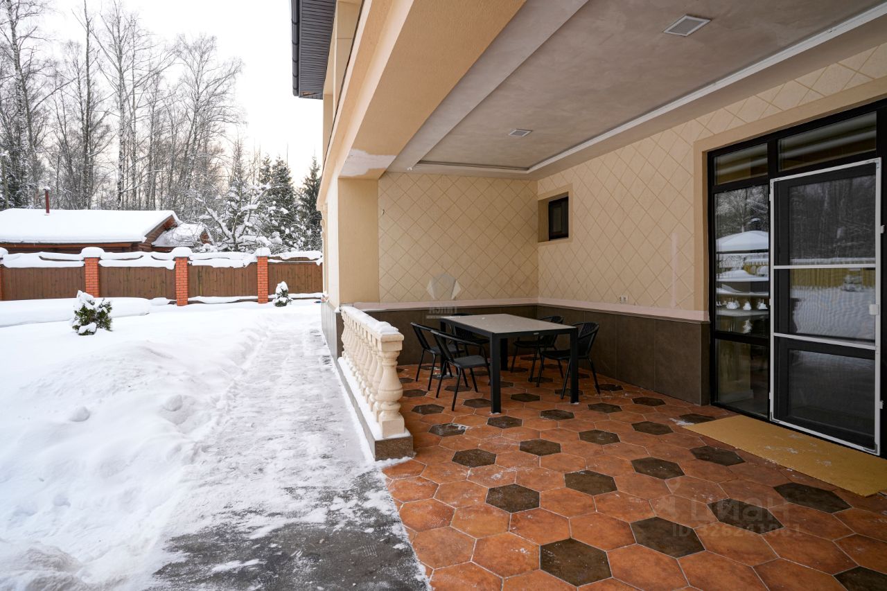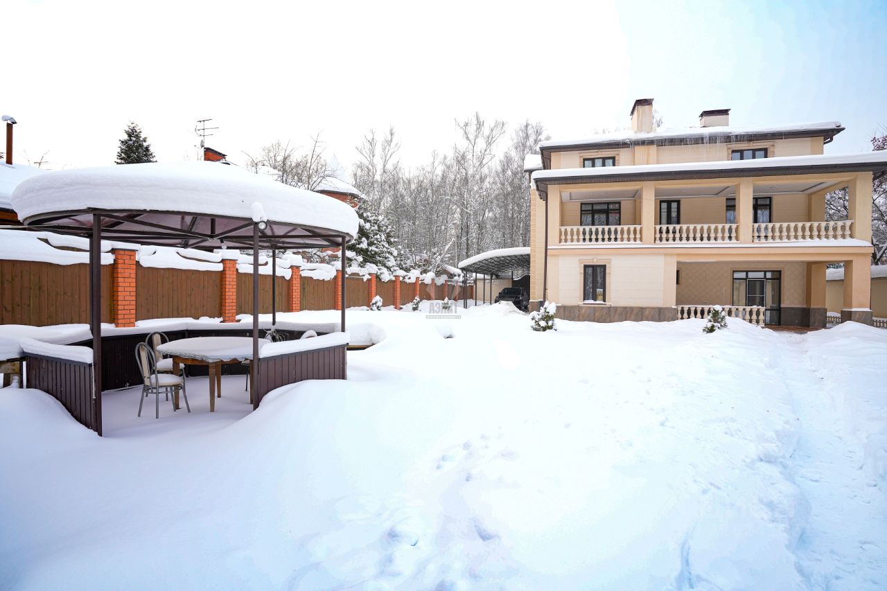 Код объекта в БД Агентства: 124-904. Согласие-2 КП. Качественный, фундаментально построенный дом в неоклассическом стиле в известном, обжитом посёлке. Функциональная планировка, высокие потолки с витражными панно, стильная и дорогая отделка элитными материалами. Дом обставлен качественной итальянской мебелью, русский бильярд, зона СПА с сауной и большой джакузи. Есть перспектива оборудовать мансарду, как полноценный этаж. Богатый ландшафт участка с несколькими зонами: сад, огород, мангальная зона, беседка, кострище, детский городок. Отапливаемый гараж на два полноценных машино-места с просторной квартирой для персонала, большая парковка перед домом. Московская прописка. Материал стен: полнотелый кирпич + утеплитель + кирпич, толщина стен 76 см. Облицовка стен: штукатурка декоративная (шуба), цоколь - искусственный камень.. Стадия готовности: меблирован. Описание внутренней отделки: красивый стильный дом с дорогой отделкой и элитными материалами: итальянская декоративная штукатурка выполнена в сложной технологичной последовательности, в 4 слоя - все этажи выполнены в этой штукатурке. В спальнях обои нейтральных тонов, все санузлы - плитка (Италия). На полу паркет из массива дерева ценных пород ( пол очень тёплый) и керамогранит. Потолки - гипсокартон многоуровневый + натяжной потолок, витражи в эркерах на 1м и 2м этажах, и в холле на 2м этаже. Всего 5 витражей (два в гостиной, в холле, в хозяйской спальне, в санузле хозяев). Лестница шириной 140 см монолитная и обшита деревом (дуб). Двери - натуральный шпон, производитель Romagnoli (Италия). Подоконники мраморные (белые с чёрными прожилками). Камин дровяной, в классическом стиле, отделан двумя сортами итальянского мрамора, выполнен по технологии (с хорошей вытяжкой, запаха от камина не бывает).. Инженерное обеспечение: котёл Buderus с запасом по мощности, возможно регулировать уровни обогрева как отопления, так и горячей воды, разных этажей по отдельности и гаража. Котёл работает как сплит система, которая считывает температуру на улице и сама регулирует температуру в доме. Бойлер Reflex (Германия), 4-х уровневая система очистки воды + дополнительно система очистка питьевой воды. Тёплый пол - в холле при входе в дом, во всех санузлах, весь пол в цоколе. Разные контуры обогрева по этажам. Общая сплит-система кондиционирования (в гостиной, во всех спальнях 2-го этажа). Установлен домофон, охранная система, датчики открытия, объёма по всем этажам, окнам (многоуровневая система охраны). Есть видео наблюдение на входные и въездные группы (заключён договор с Росгвардией). Автономный генератор автоматический, питает весь дом.. Мебель, оборудование: дом обставлен мебелью и оборудован на 100%. В основном мебель Итальянских брендов. Люстры, шторы. Встроенная кухня цвета топлёного молока (Италия), с полубарным столом и стульями, с каменной столешницей и техникой SMEG и Liebherr (два холодильника + морозилка). В бильярдной стол 10 футов (русский), барная стойка и вторая кухня в цоколе, оборудованная посудомойкой, холодильником и морозилкой. Кинозал с выдвижным экраном и звуком на 360. Сантехника в санузлах (Италия).. Тип участка: с деревьями и богатым ландшафтом. Благоустройство участка: ландшафтный дизайн, террасное зонирование участка, выделенная зона плодовых деревьев (груши, яблони), есть зона небольшого огородика, где растут ягоды, п