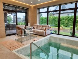 Код объекта в БД Агентства: 220-142. Крекшино КП. Уютная современная загородная усадьба, состоящая из 5 строений. Основной дом фактически готов под ключ, не хватает только межкомнатных дверей, розеток и выключателей. В остальном отделка полностью выполнена дорогими качественными материалами: мраморное напольное покрытие из элитной плитки, в том числе с ковровым рисунком ручной работы, эксклюзивная плитка в санузлах, во внешней облицовке использован дагестанский камень. Функциональная современная планировка от востребованного архитектора: в доме 7 спален, двухсветная гостиная-столовая, большой зимний сад, спортзал и кинозал, переливной бассейн. Полностью меблированные дополнительные строения в едином архитектурном стиле основного дома: гостевой дом, баня, зимний павильон с кухней, большой навес для 6 автомобилей и гараж на 1 авто. Отличная внешняя инфраструктура в пешей доступности, близость к двум шоссе (Минскому и Киевскому). Год постройки: 2021. Материал стен: крупноформатный керамический кирпич Porotherm, толщина стены 65 см. Облицовка стен: штукатурка Короед Юкки (по сетке). Стадия готовности: под ключ (частично).Описание внутренней отделки: выполнена отделка премиум класса: потолки и стены - штукатурка, шпаклевка с сеткой. В спортзале и зимнем саду стены отделаны плиткой. В гостевом доме на стенах фактурная штукатурка с лессирующим лаком (можно мыть). В санузлах в основном доме эксклюзивная плитка из белой глины с изразцами (Италия). В санузле 3-го этажа большая плита - панно из натурального оникса со слюдой, размер 1.2м х 2м. Потолки в основном доме - 2 склеенных гипсокартона толщиной 12 см, оштукатурены. В гостевом доме потолки окрашены. В спортзале и зимнем саду потолки отделаны лиственницей, окрашены. Пол - штучный мрамор Emperador Dark, Emperador Light, рисунок - ковры в стиле Versace (ручной сборки). Пол в спортзале из португальской пробки. Закуплена пробковая плитка и подготовлен пол в бильярдной. Лестничный марш монолитный шириной 110 см, ступени отделаны мрамором (Emperador Dark) толщиной 3 см. Подоконники из мрамора Crema Marfil (Испания)..Инженерное обеспечение: в основном доме газовый котел Viessmann 120 кВт, установлено программное обеспечение на 3 контура. В гостевом доме - газовый котел Viessmann 22 кВт, прямоточный, двухконтурный. Во всех котельных трубопроводы из меди (паяные). Бойлер косвенного нагрева Viessmann на 300 л, система очистки воды. Сплит-система, кондиционеры в спортзале и комнатах 2го этажа. Все коммуникации разведены, электро провода-гостовские (Дмитров), радиаторы отопления, трубы - Rehau. Теплые полы - Rehau Bautherm, гребенки Oventrop. Розетки и выключатели Legrand (в доп.строениях). Оборудованы сигнализация и видеонаблюдение (Delta).Мебель, оборудование: В гостевом доме кухонная техника Haier, кухонная мебель российского производства (''КухЗавод''). В павильоне кухонный гарнитур из сосны, выполнен в технике браширования (искусственно состаренная), мягкая мебель ручной работы с каретной стяжкой из специальной жаро-влагостойкой ткани. Оригинальный стол со столешницей из слэба мрамора и ножками из песчаника.Сантехника в доме - Villeroy&Boch, в гостевом доме - Акванет (пр-во России). Смесители, душевые колонки, гигиенические души - Mariani (Италия)..Площадь участка, соток: 21.Тип участка: парковый с деревьями и ландшафтом.Благоустройство участка: 175 туй по периметру, всего больше 300 растений. 3 вековых ду