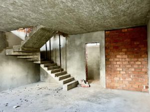 2566Таунхаус 380 кв. м без отделки в жилом комплексе ''Изумрудный''. Поселок расположен в 16 км от МКАД по Калужскому шоссе. Москва, Троицк, коттеджный посёлок Изумрудный.Ключевые особенности: 4 уровня, включая мансарду и цоколь, монолитные перекрытия, свободная планировка, собственные парковочные места, закрытый внутренний двор с возможностью установить беседку, обустроить газон, гараж.Конструктив: фундамент монолитный, стены газоблок, внешние стены кирпич, фасад с облицовкой кирпичом, крыша — металлочерепица, остекление — тройные стеклопакеты.Коммуникации центральные:газ, электричество, канализация, водоснабжение.Планировка: На всех этажах свободная планировка. По проекту от застройщика предлагается следующая планировка:1 этаж: кухня-столовая-гостиная (с выходом на участок), с/у, котельная, лестница, гараж,2 этаж: 2 спальни, с/у, мастер-спальня с гардеробной и с/у,3 этаж: 2 спальни, с/у,цоколь свободная планировка.Инфраструктура внутренняя:коттеджный поселок ''Изумрудный'' расположен в г. Троицк, мкр В. В поселке комплексная застройка малоэтажные дома, таунхаусы, коттеджи. В поселке оборудованы прогулочные зоны, детская площадка, спортивная площадка, хоккейная коробка (зимой каток), пешеходный выход в парк Заречье, здание администрации. Поселок строго охраняемый, КПП, шлагбаум, огорожен по периметру. Инфраструктура внешняя:в пешей доступности: магазины, остановка общественного транспорта, фитнес-центр, инфраструктура г. Троицка.Из поселка удобный выезд на Калужское шоссе, до м. Ольховая 20 минут на автомобиле. В перспективе в пешей доступности будет построена станция метро Троицкой линии.
