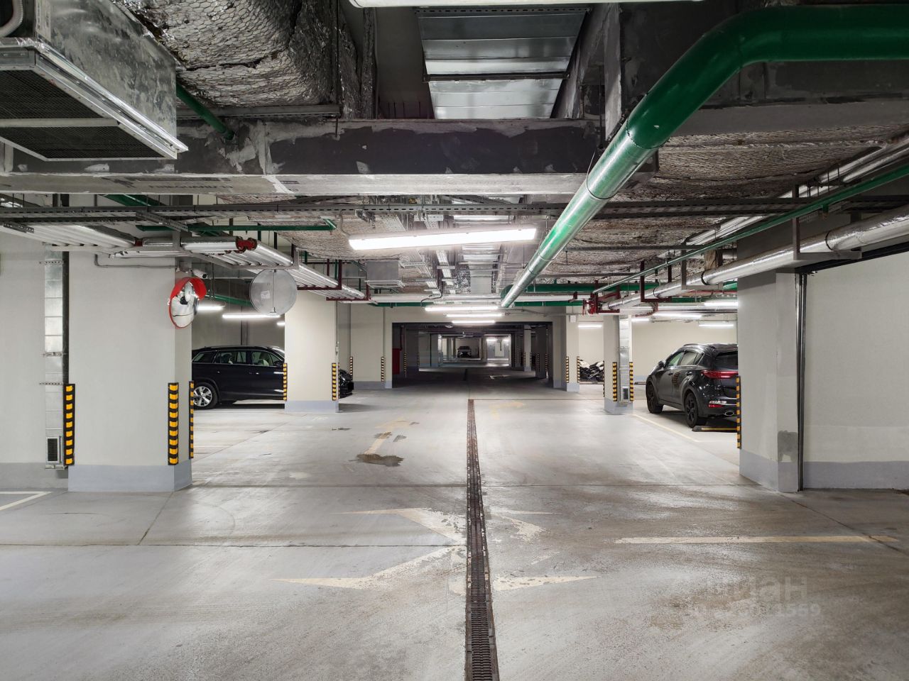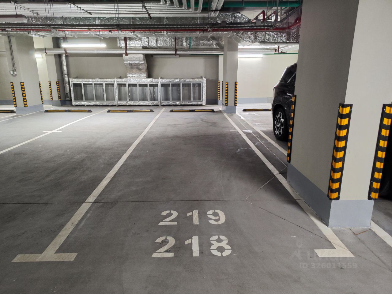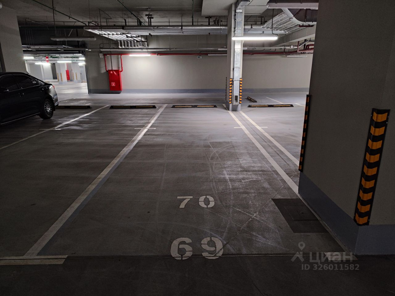 Просторное машиноместо на -1 этаже, отдельным блоком, площадью 20,7 кв.м. напротив входа во вторую секцию.