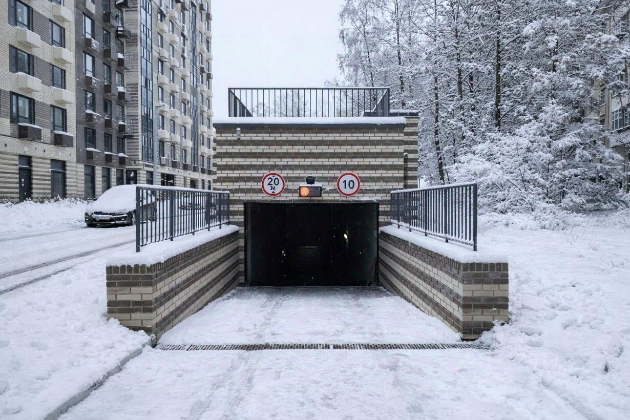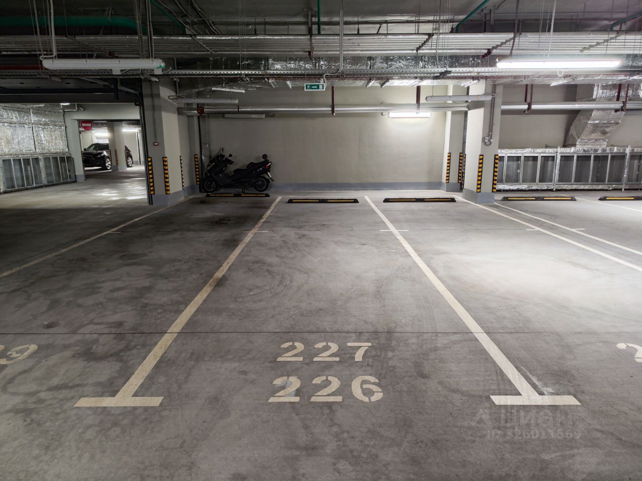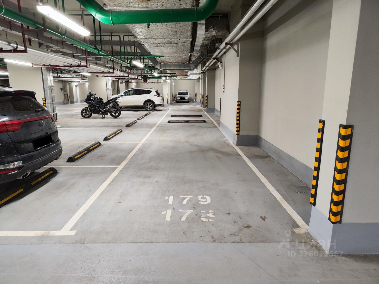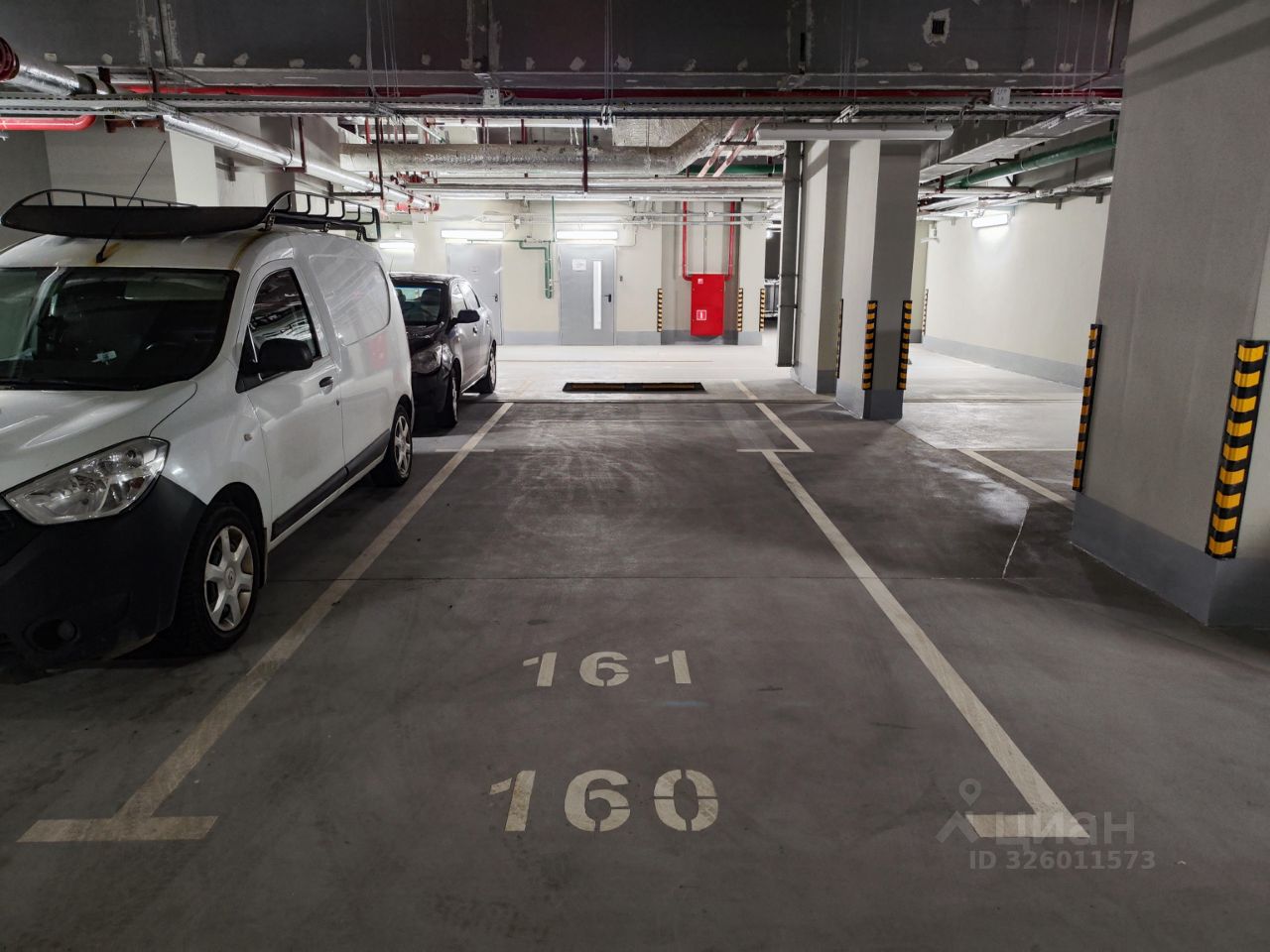 Просторное машиноместо на -1 этаже, отдельным блоком, площадью 20,7 кв.м. напротив входа во вторую секцию.