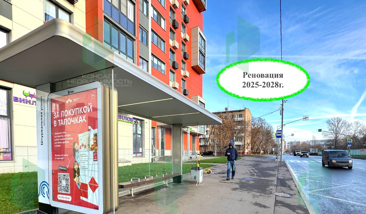 Продажа торгового помещения 255,6 м2 по адресу проезд Стройкомбината, д. 1 (10 минут транспортом от метро Озерная / 1 минута от МЦД Очаково). 1 линия домов. Помещение 255,6 м2, располагается на 1 этаже, открытая планировка, два отдельных входа, высота потолка 3,8 м, витринные окна по фасаду. Жилой комплекс ''Новое Очаково'' находится в 3 минутах пути пешком от новой станции МЦД-4 ''Очаково'', рядом с ''Долиной реки Очаковки'' и Очаковскими прудами. На территории жилого квартала строятся не только дома: здесь будут школы — общеобразовательная на 1100 мест и начальная для 300 учеников — и два детских сада, где смогут учиться 625 малышей. Рядом с проектом появится городской физкультурно-оздоровительный комплекс и поликлиника. Проект бульвара создало британское бюро Gillespies. Новый пешеходный мост удобно свяжет с объектами инфраструктуры и благоустройства соседних жилых кварталов, объединённых в Матвеевский кластер. Дом введен в эксплуатацию, собственность оформлена. Арендатор: доставка ''Яндекс лавка'', работают, договор аренды от 31.10.2025 года на 7 лет, начиная с 25 месяца аренды 1 100 000 рублей, начиная с 37 ого месяца аренды 1 200 000 рублей. Индексация с 49 месяца аренды не более 5% по уведомлению от арендодателя. Стоимость 138 млн. рублей. Без комиссии.