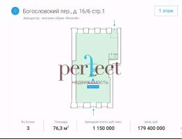 Продажа 76,3 м2, ГАБ - Basarab, обувной бренд по адресу Богословский пер, 16/6с1Предлагаются на продажу помещения в Богословском переулке, ЦАО, г. Москва, в районе знаменитых Патриарших. Продажа помещений у метро. Объект расположен в шаговой доступности от станций метро ''Тверская'', ''Пушкинская'' и ''Чеховская'' — 5 минут пешком. Интенсивный пешеходный трафик. Развитая инфраструктура, крупный жилой и деловой район.Basarab — российский обувной бренд, основан в 2014 году. Basarab создает элегантную и комфортную обувь для современных женщин и мужчин.Условия аренды и продажиАрендная плата 1 150 000 рублей в месяц, коммунальные платежи и электричество оплачиваются арендатором отдельно. Схема сделки: договор купли-продажи недвижимости (ДКПН).Помещения с внутренней отделкой.Отдельная входная группа с фасада в каждый блок, есть вход со двора.Все городские инженерные коммуникации.ЭнергообеспечениеДостаточное количество под любой вид деятельности.Свободное использование — ограничений нет. Рассмотрим все предложения.Крупный деловой район с большим жилым массивом. В окружении расположены бизнес-центры ''Пушкинский'', ''Галерея Актер'', элитные жилые комплексы ''Сытинский'', ''Бакст на Патриарших'', ''Левенсон'', ''The Patricks'', Государственный центральный музей современной истории России, Литературный институт имени А. М. Горького, а также театры ''Практика'', ''Московский драматический театр имени А. С. Пушкина'', ''МХАТ им. Горького'', ''Электротеатр Станиславский''.