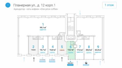 Лот: 37675. Помещение свободного назначения формата Street Retail в СЗАО Москвы. Шаговая доступность от ст. метро ''Планерная'' — 1 минута пешком. Отличная пешеходная и транспортная доступность. Помещение расположено в крупном сложившемся жилом районе с высокой плотностью застройки и развитой инфраструктурой.Арендатор: One price coffeМАП: 260 000 руб.