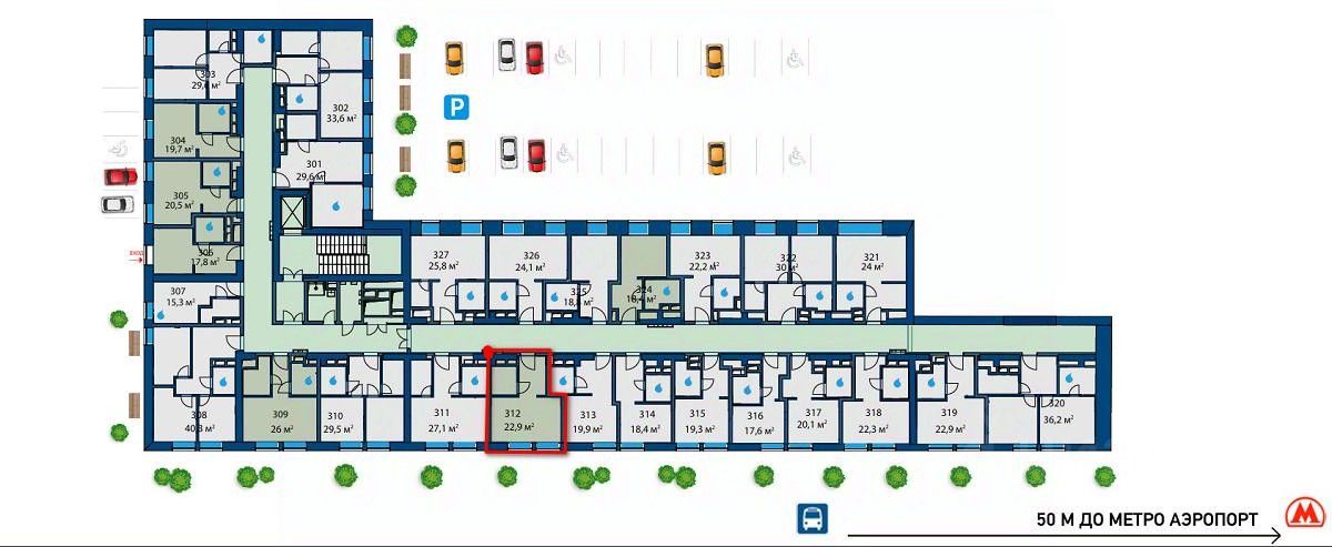 Лот: 416569, бизнес-центр Air-Space. БЕЗ КОМИССИИ! Продается ПСН площадью 22,9 м2 на 3 этаже (ГАБ с арендатором — финансовая компания) в офисном здании класса B Air-Space, расположенном в 2 минутах пешком от метро Аэропорт. Планировка: 1 кабинет с окнами на Ленинградский проспект, коридором и полностью оборудованным санузлом, есть несколько мокрых точек, можно оборудовать кухонную зону при желании. Состояние помещения: со свежим дизайнерским ремонтом. Высота потолков — 3,3 м. Установлено центральное кондиционирование и вентиляция. Все помещения имеют отдельный вход из коридора, двери и светильники в едином стиле и собственный оборудованный санузел, есть дополнительные мокрые точки — можно организовать с согласия УК зону кухни в помещении. Здание бизнес центра 1964 года постройки сейчас полностью реновировано и все коммуникации проведены новые. Инфраструктура здания включает в себя: презентабельное лобби, зону отдыха и букшеринга с мягкими диванами, столиками и кофе-зоной, коворкинг, в который можно прийти поработать с ноутбуком, а также зону хранения и кладовые в цокольном этаже. В комплексе обеспечена охрана и видеонаблюдение 24/7. Условия покупки: собственники — ИП, в помещении сидят арендаторы — финансовая компания, ежемесячная прибыль — 108.317 руб в месяц. Доходность данного помещения — 9,2 %.