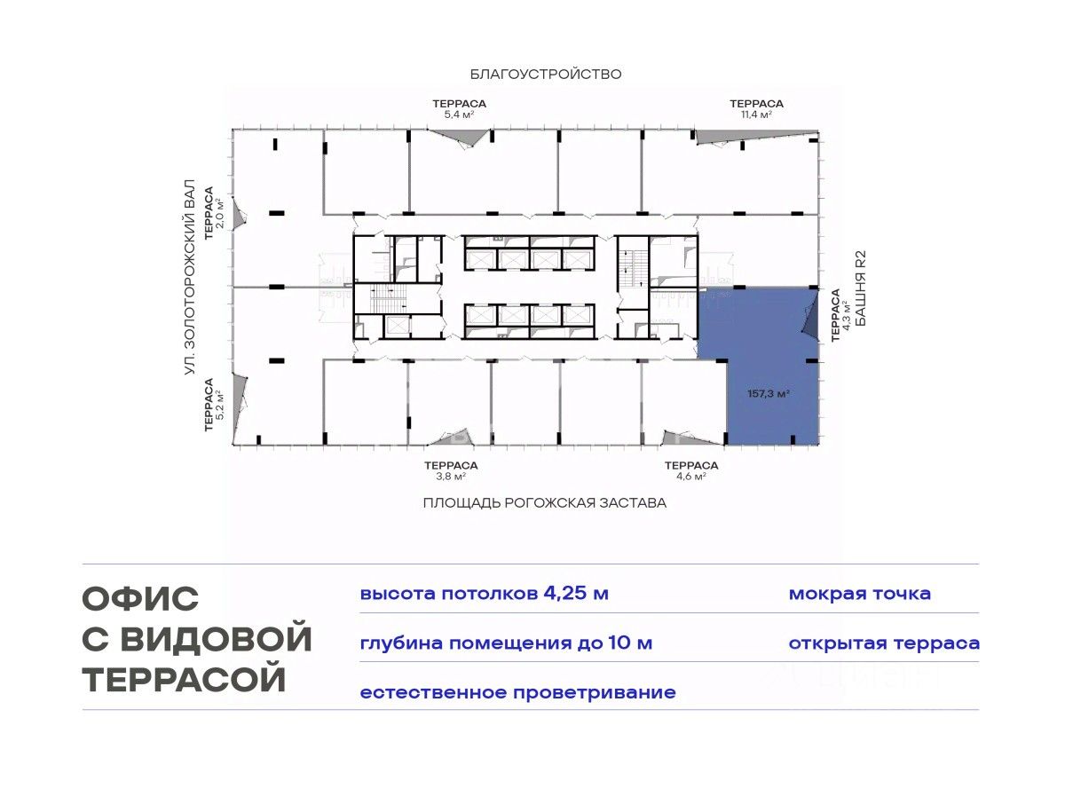 Рассрочка 0% до окончания строительства В реализации уникальный формат коммерческой недвижимости - офисы с террасами в составе бизнес-центра класса А STONE Римская напрямую от застройщика STONE, лидера офисного рынка. Планировки соответствуют требованиям функционального офиса: глубина помещения - до 10 м, высота потолков - 3,65 м, шаг колонн - 8,4 х 8,4 м, отделка Shell&Core. Окна в пол обеспечат оптимальный уровень инсоляции и предусматривают возможность естественного проветривания. Видовые террасы и благоустроенная территория бизнес-центра предлагают не только удобные рабочие пространства, но и зоны для отдыха, где сотрудники смогут наслаждаться перерывами на свежем воздухе. Транспортная доступность: - 3 мин. от ст. м. ''Римская'' и ''Площадь Ильича'' - 1 ст. м. до Садового кольца - 3 мин. до ТПУ ''Серп и Молот'' - 900 м до ТТК Строящийся пересадочный хаб обеспечит прямой доступ как в районы Подмосковья, так и в центр: 29 мин. - до Москва-Сити по МЦД-4 без пересадок, 20 мин. - до ст. м. ''Белорусская''. Архитектурную концепцию бизнес-центра разрабатывает бюро WALL. STONE Римская будет состоять из двух офисных башен, объединенных двухуровневым стилобатом, где разместится необходимая инфраструктура. Среди запланированных объектов - кафе и рестораны, столовая с открытым доступом, фитнес-студия, аптеки, банкоматы. STONE Римская реализуется в концепции Healthy building - здания, которые способствуют физическому, ментальному и социальному благополучию его резидентов. В числе ключевых характеристик концепции, позитивно влияющих на продуктивность сотрудников - уровень инсоляции, количество и качество воздуха, а также элементы биофильного дизайна. STONE - девелопер коммерческой и жилой недвижимости классов бизнес и премиум в Москве с 19-летним опытом. С 2022 года занимает лидирующую позицию на офисном рынке (рейтинг РБК). Сегодня в портфеле девелопера представлено 3 млн кв. м построенных, строящихся и проектируемых объектов, из которых более 1 млн кв. м находятся в стадии строительства. Компания имеет самый масштабный проектный портфель офисной недвижимости класса А на московском рынке (данные NF Group) и возглавляет топ-6 устойчивых девелоперов согласно исследованию F Research от Forbes. В настоящий момент девелопером представлено 16 бизнес-центров класса А, а также 3 жилых комплекса бизнес+ класса. ID.19782