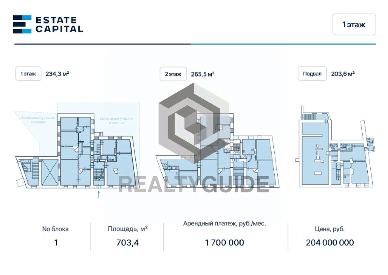 Административное здание ''Лефортовский пер., 12/50с2'' класса C Площадь: 703,4 м2 Стоимость за 1 м2: 290 019,9 р. Стоимость площади: 203 999 997,7 р. Система налогообложения: УСН Готовность: готово к въезду Этаж: 1 Планировка: смешанная Наличие с/у: , Внутри Статус: свободен Высота потолков, h: 3.00м Характеристики здания Адрес: Лефортовский переулок, 12/50с2, Москва Округ: Центральный административный округ Класс: C Площадь здания: 703,4 м2 Полезная площадь: 703,4 м2 Этажность: 2 Налоговая: 1 Год постройки: 1917 Безопасность: Охрана, Сигнализация, Видеонаблюдение Парковка: Платная открытая Здание включает 1 этаж, 2 этаж и подвал. Высота потолков — 3-4,2 м. Отлично подойдёт под любой вид деятельности: торговое помещение, офис, магазин, ресторан, аптека, салон красоты, банк, офис продаж и др. Здание расположено на земельном участке общей площадью 649 м2, срок аренды до 27.11.2074. Предусмотрена возможность организации террасы/веранды.