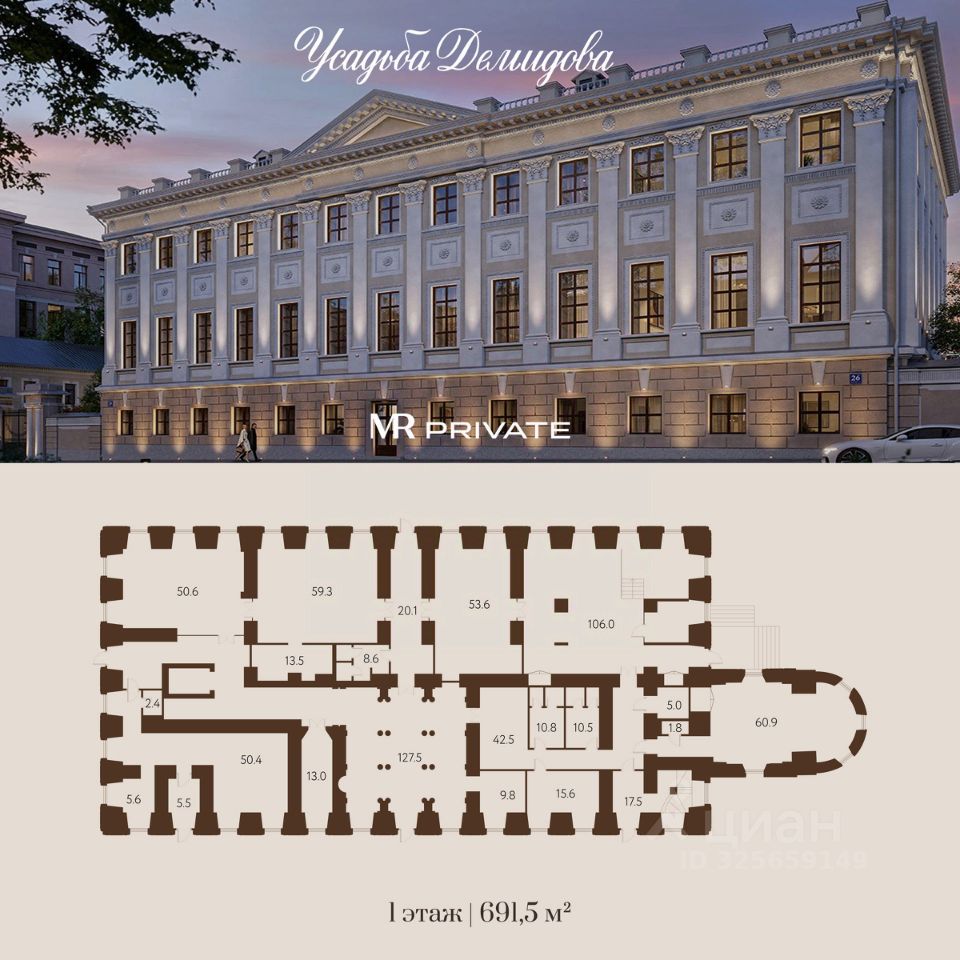 Ансамбль особняков конца XVIII начала XIX века, расположенный в историческом центре Москвы, по адресу ул. Новая Басманная, д. 26. На огороженной территории находятся: главный корпус, 2 флигеля и городские виллы — все это части единой архитектурной композиции, собранной вокруг усадебного парка с аллеями и прудами, который является частным закрытым парком для резидентов усадьбы. Главный корпус (корпус 1) оригинальный парадный дом ансамбля Дом Демидова (дом носит имя своего основателя, продолжателя рода Демидовых, династии металлургов и промышленников). Дом уцелел при пожаре 1812 года, это одно из немногочисленных строений, в котором сохранились аутентичные стены и внутренние планировки, которые продолжают нести атмосферу дворянского образа жизни. Строение имеет 3 этажа с анфиладной планировкой, потолки высотой до 6 м., окна выходят на все стороны (основная часть в сторону парка и ул. Новая Басманная). Корпус имеет 2 входные группы одна со стороны ул. Новая Басманная, вторая (главный вход) со стороны усадебного парка. Общая площадь строения составляет 2 171,3 м2. Комнаты светлые и просторные, старинная кирпичная кладка и толщена стен обладают не только прекрасной шумоизоляцией, но и имеют терморегулирующие свойства в жару прохладно, зимой тепло прекрасно сохраняется внутри дома. Площадь дома позволит разместить все необходимое: от спортивного зала со СПА зоной, до кинотеатра внутри дома. Также на территории предусмотрена закрытая парковка. Район имеет прекрасно развитую инфраструктуру, в шаговой доступности находятся: Сад им. Н.Э. Баумана, в котором можно посмотреть фильм или послушать лекцию, заняться танцами или йогой или просто прогуляться по тенистым аллеям, пешие прогулки по району разнообразят различные архитектурные достопримечательности особняки знатных фамилий, которые долгое время заселяли этот район и прекрасно сохранились до наших дней, имея статус музея, знаковые учебные заведения среднего и высшего образования, кафе, рестораны и т.д. Дом Демидова - это место, где история обретает вторую жизнь и переносит в наши дни все лучшее моменты, которые были присущи дворянскому образу жизни элегантность, размеренность и уединение в собственном родовом имении. Откройте дверь в Вашу усадьбу.