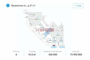 Лот: 33179. Напишите нам в чат или позвоните отправим подробную презентацию с фотографиями и всей информацией по объекту!Привлекательное расположениеТорговая площадь на улице Ярцевская, 27к1, расположена в одном из самых динамично развивающихся районов Москвы — Кунцево. Объект находится всего в одной минуте пешком от станции метро ''Молодёжная'', что обеспечивает отличную пешеходную и транспортную доступность. Это идеальное место для бизнеса, который хочет быть ближе к своим клиентам.Развитая инфраструктураОкружение объекта впечатляет: рядом находятся жилые комплексы ''Достояние'', ''Vander Park'', ''Рублевские огни'', ''Ярцевская 24'', а также торговые центры ''Кунцево Плаза'' и ''Трамплин''. В непосредственной близости расположен ВУЗ ''МАИ'', что гарантирует постоянный поток потенциальных клиентов.Удобная планировка и высокие потолкиПомещение площадью 16.8 м² имеет свободную планировку, что позволяет адаптировать его под любые нужды бизнеса. Высота потолков варьируется от 3,6 до 4,1 метров, что создает ощущение простора и позволяет реализовать любые дизайнерские решения. Перекрытия выполнены из железобетона, что обеспечивает надежность и долговечность конструкции.Готовый арендатор и стабильный доходНа данный момент помещение арендует компания Hidar (табак)Преимущества сделки- Тип сделки: Продажа- Стадия строительства: Построен- Витрины: Да- Входная группа: С фасадаЭта торговая площадь — отличная возможность для инвесторов и предпринимателей, ищущих выгодное вложение в коммерческую недвижимость. Сочетание отличного местоположения, развитой инфраструктуры и стабильного дохода делает этот объект уникальным предложением на рынке. Не упустите шанс стать владельцем перспективного бизнеса в одном из лучших районов Москвы.Заходите в профиль, чтобы увидеть еще больше интересных предложений.