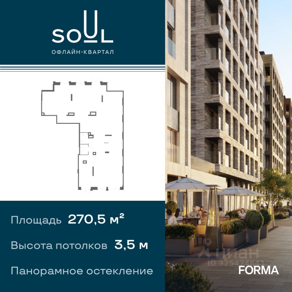 Помещение в строящемся проекте бизнес-класса SOUL от девелопера FORMA. Жилой комплекс SOUL расположен на Часовой улице в историческом районе Аэропорт. В 10 минутах ходьбы от ЖК (1 км) находится станция метро Сокол, а в 8 минутах (870 м) — станция МЦД-2 Красный Балтиец. Характеристики помещения: - Площадь - 270,5 м2 - Помещение свободного назначения - Панорамное остекление - Готовность - 3 квартал 2029 года. Условия покупки: - 100% оплата - рассрочка - ипотека