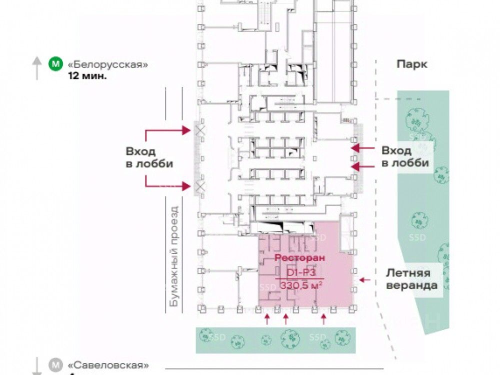 Лот 156021. В продаже помещение под ресторан в БЦ А класса, на 1м этаже Москва, премиального офисного квартала STONE Towers, расположенного в престижном Белорусском деловом районе. Отличительной особенностью башни станет сквозное двусветное лобби с прямым выходом в центр парка. Проект отличает высокая транспортная доступность, обеспечивающая связь с ключевыми районами. Общественные пространства и лобби бизнес-центра предлагают разнообразные зоны для работы и отдыха. Благоустройство территории включает функциональное зонирование, зеленые островки, ландшафтные холмы и воркаут-зону для резидентов. Локация предлагает резидентам комфортную среду для работы и жизни благодаря своей развитой инфраструктуре. Транспортная доступность, обеспечиваемая близостью к метро и ТТК, делает расположение STONE Савеловская особенно удобным. Все эти факторы создают благоприятную среду как для работы, так и для жизни. По расчетам трафика целевой аудитории: ежедневно будут посещать около 10 тыс. резидентов и гостей. Дополнительный трафик сформируют два жилых комплекса поблизости на 5 600 жителей. Основные характеристики: Престижная локация Высокая проходимость Деловое и жилое окружение Фасады из натурального камня и витринное остекление в два уровня Места для размещения вывески Технология для размещения общепита Продуманная логистика Гибкие планировочные решения Зона размещения летней веранды. Функциональные характеристики: В фасаде здания использованы натуральный камень и структурное витринное остекление. Такое сочетание позволяет повысить статус проекта, а внутренний интерьер использовать как дополнительный элемент привлечения гостей. Наличие второго света даст возможности для создания привлекающего внимание интерьера и повысит узнаваемость здания (заведения ресторана) Места для размещения вывески и само расположение здания повысят его заметность и создадут дополнительное преимущество для оператора. Свободная планировка, позволяющая гибко адаптировать пространство в зависимости от концепции оператора. 4 распределенных входа Две зоны загрузкипогрузки (из паркинга и с уровня первого этажа) Предусмотрено технологическое оснащение для размещения ресторана Технические характеристики: Здание/корпус: Ресторан Этажи: 1 Sобщ: 330,5м2 высота 4.6 м 4 входа Готовность: 2025 Свободный доступ 24/7 Здание ресторана (единственный) +веранда у парка 5000 м2 Вывеска на фасаде Витринное остекление 12 мин. метро ''Белорусская'' 4 мин. метро ''Савеловская'' Финансовые характеристики: Общая стоимость: 456 090 000 рублей Стоимость кв.м. 1 380 000 рублей D1-P3(P)ресторан Первый взнос от 20% Рассрочка 0% до окончания строительства