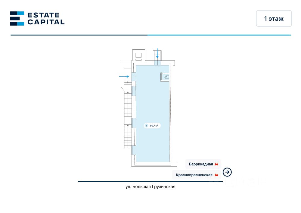 Продажа псн площадью 90.7 кв.м на 1 этаже жилого здания. Описание ПРЕДЛАГАЕТСЯ ПРОДАЖА ПОМЕЩЕНИЯ Торговое назначение высота потолков — до 3,2 м. Культурно-деловое окружение Отличная пешеходная и транспортная доступность 2 отдельные входные группы Планировка — свободная, перекрытия — ж/б Помещение с отделкой от арендатора Высокий рекламный потенциал и место для размещения вывески Городская парковка напротив помещений Отдельная входная группа с фасада в каждый блок, есть входы с торца. Все городские инженерные коммуникации. Энергообеспечение - достаточное количество Схема сделки: договор купли-продажи недвижимости (ДКПН) Расположение Предлагается в продажу габ на улице Большая Грузинская, ЦАО, г. Москва. Аренда и продажа помещений у метро. Шаговая доступность от ст. метро ''Баррикадная'' и ''Краснопресненская'' — 5 минут пешком. Отличная пешеходная и транспортная доступность. Высокий рекламный потенциал и возможность размещения вывесок на фасаде. Городская парковка вдоль фасада здания. Окружение Помещения расположены в крупном сложившемся жилом и деловом районе с высокой плотностью застройки и развитой инфраструктурой. В окружении находятся БЦ ''GrowUp'' и ''Грузинка 30'', штаб-квартира ''Виасат'', Министерство природных ресурсов и экологии Российской Федерации, Институт физики Земли им. О.Ю.Шмидта, Московский Планетарий, Государственный центр современного искусства и Мастерская Церетели.