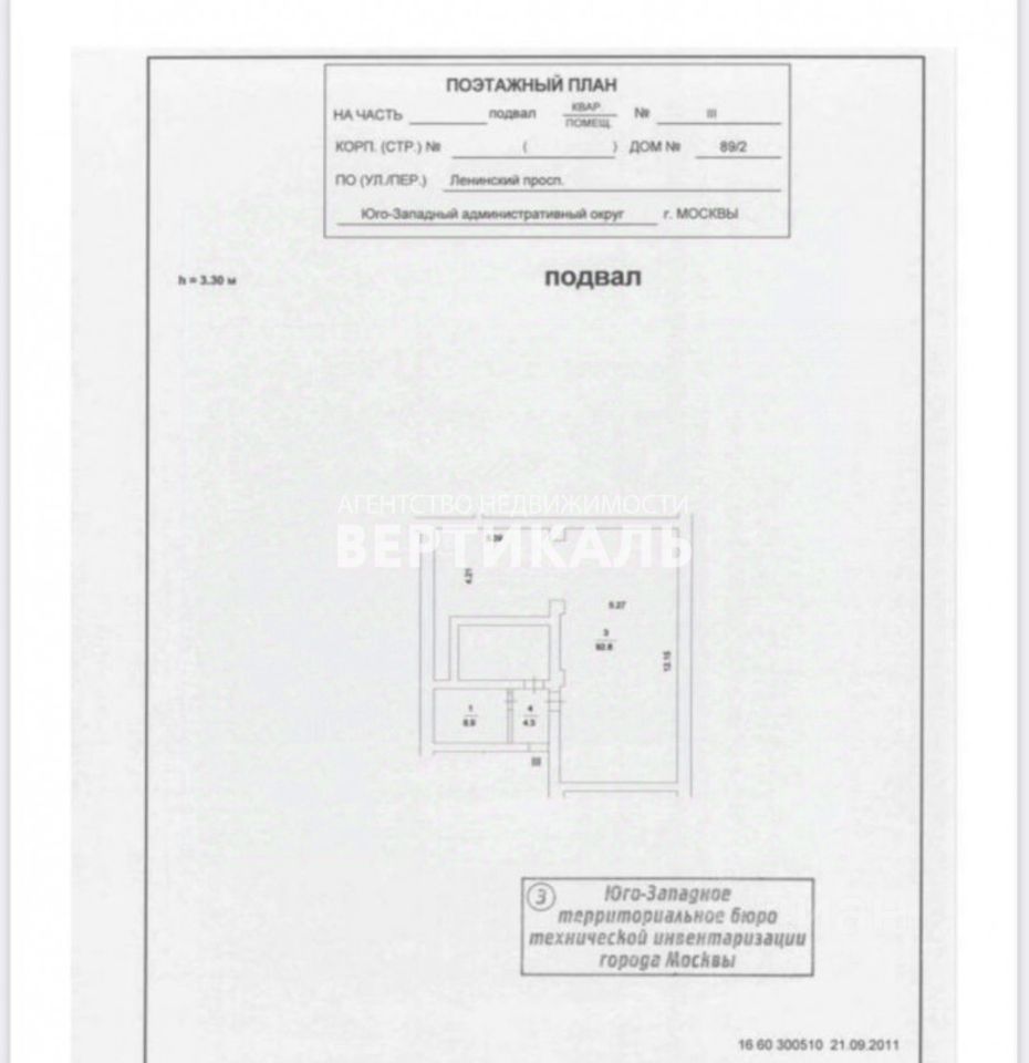 Коммерческое помещение площадью 86.6 м², расположено по адресу: г. Москва, Ленинский проспект, 70/11. Объект занимает -1 этаж в здании с этажностью 9 этажей. Помещение требует ремонта, свободного назначения, имеет общий вход. Здание относится к типу жилого.