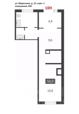 Коммерческое помещение площадью 50 м², расположено по адресу: г. Москва, улица Маресьева, 12к1, помещение 10Н, район Некрасовка. Объект занимает 1 этаж в здании с этажностью 17 этажей. Помещение без отделки, свободного назначения, имеет отдельный вход. Здание относится к типу жилого, построено в 2019 году. Предусмотрено электричество, канализация, водоснабжение, отопление.