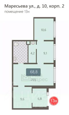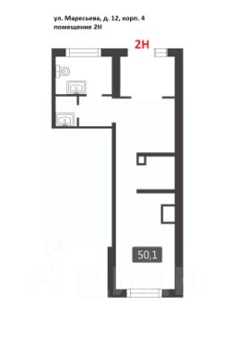 Коммерческое помещение площадью 50.1 м², расположено по адресу: г. Москва, улица Маресьева, 12к4, помещение 2Н, район Некрасовка. Объект занимает 1 этаж в здании с этажностью 17 этажей. Помещение без отделки, свободного назначения, имеет отдельный вход. Здание относится к типу жилого, построено в 2019 году. Предусмотрено электричество, канализация, водоснабжение, отопление.