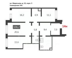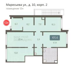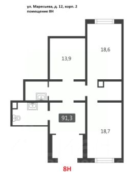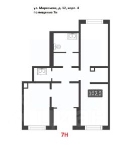 Коммерческое помещение площадью 102 м², расположено по адресу: г. Москва, улица Маресьева, 12к4, помещение 7Н, район Некрасовка. Объект занимает 1 этаж в здании с этажностью 17 этажей. Помещение без отделки, свободного назначения, имеет отдельный вход. Здание относится к типу жилого, построено в 2019 году. Предусмотрено электричество, канализация, водоснабжение, отопление.