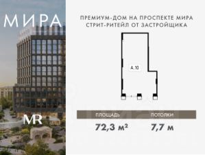 Широкий выбор коммерческих площадей с отдельным входом на 1 этаже в проекте МИРА от девелопера MR.МИРА — это дом премиум-класса с собственным входом в Парк Аквендук. Жилой квартал расположен в Алексеевском районе на северо-востоке Москвы.Основные характеристики: - Помещение свободного назначения,- Панорамные окна,- Свободная и функциональная планировка,- Платежеспособный покупательский спрос.Подробности уточняйте по телефону в отделе продаж.
