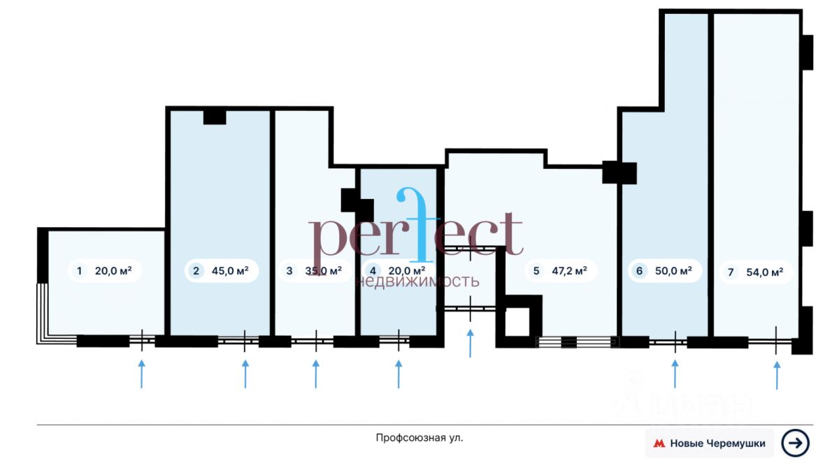 Описание Продажа Street Retail помещения торгового или свободного назначения (ПСН) площадью 45.0 кв.м на 1 этаже жилого здания. Большие витрины. Универсальная планировка под любые виды деятельности. Высокие потолки. Возможность деления на блоки и организации дополнительных входов. Застройщик Московский фонд реновации жилой застройки Отдельные входные группы с 1ой линии. Интенсивный пешеходный трафик вдоль витрин (более 1000 человек в час). Условия продажи Схема сделки: договор долевого участия (ДДУ). Срок завершения строительства: до 31.12.2026 г. Прогнозная ежегодная индексация/инфляция: не менее 7%. Застройщик Московский фонд реновации жилой застройки. Отдельные входные группы с 1-ой линии. Интенсивный пешеходный трафик вдоль витрин (более 1000 человек в час). Расположение Предлагается на продажу помещение на улице Профсоюзная, ЮЗАО, г. Москва. Продажа помещения у метро. Шаговая доступность от ст. метро ''Новые Черёмушки'' — менее 1 минуты пешком. Отличная пешеходная и транспортная доступность. Помещение расположено в районе с высокой плотностью застройки и развитой инфраструктурой. В окружении находятся торговые центры ''Панорама'', ''Черёмушки'', жилые комплексы ''Дирижабль'',''Родной город'', ''Nametkin Tower'', нефтегазовые компании ''КазРосГаз'', ''Газпром трансгаз''.