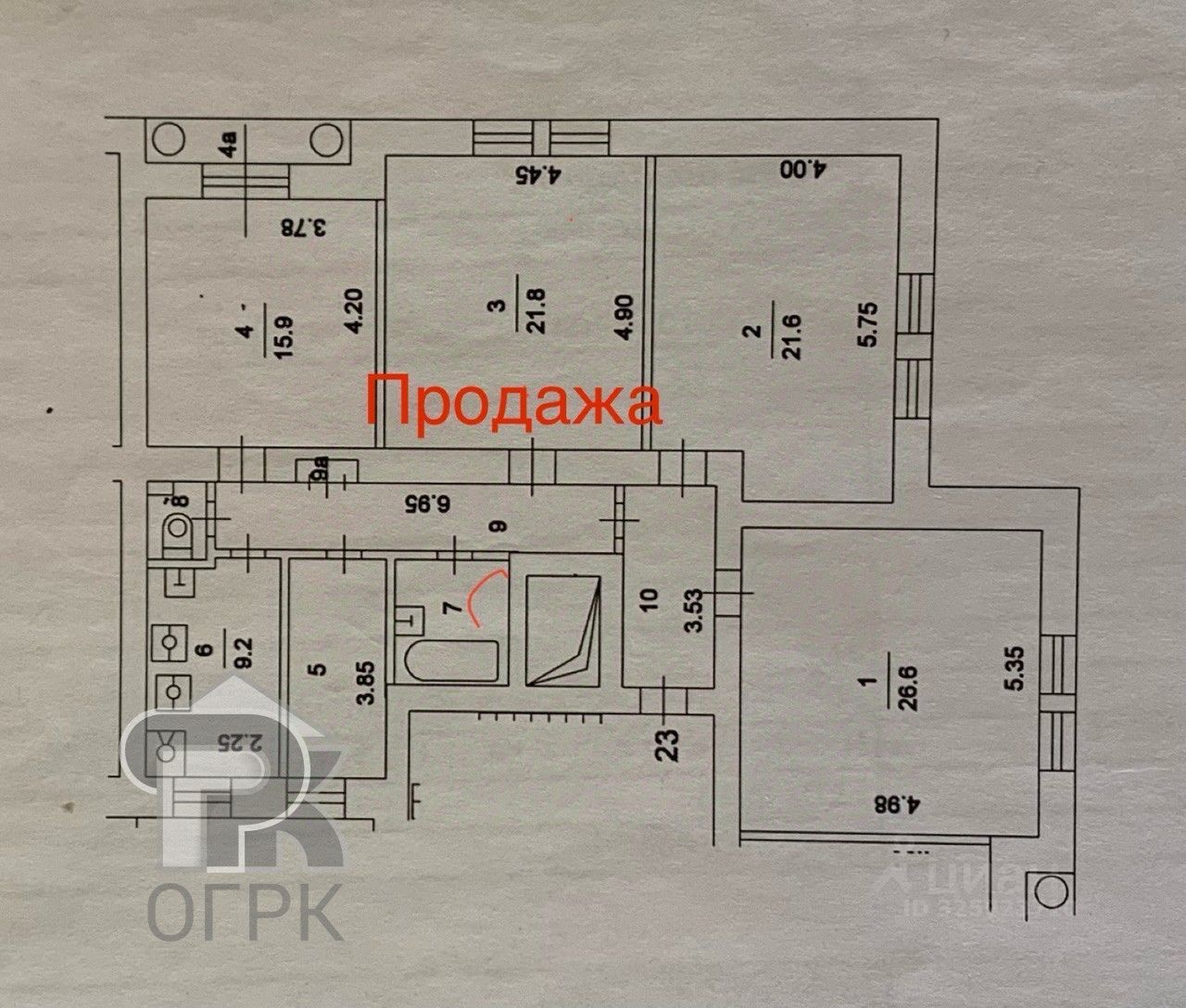 Продается выделенная комната в 4 комнатной коммунальной квартире на 2 этаже 4 этажного дома. На постоянной основе в квартире проживает всего два человека (мужчина и женщина). Две комнаты муниципальные (комната 1 и 2), одна из муниципальных комнат закрыта, никто не проживает, во второй комнате живет семья из двух человек (мать и взрослый сын). Одной из частных комнат владеет мужчина (комната 3), в квартире бывает очень редко, наездами. Комната 4 продается. Основание собственности ДКП, более 5 лет, юридически свободна (нет зарегистрированных лиц), Прямая продажа. Долгов за ЖКУ нет. Отказы от преимущественного права покупки от всех собственников получены, документы готовы к сделке.