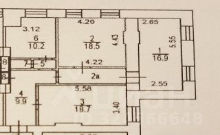 Продаются 2 просторные комнаты (на плане комнаты номер 1 и номер 2) в престижном районе Москвы в малонаселенной 3-х комнатной квартире (в третьей комнате проживает один человек). Комнаты площадью 16,9 м.кв. и 18,5 м.кв. имеют отдельные кадастровые номера и финансово-лицевые счета, продаются по отдельности, стоимость каждой комнаты 4 800 000 рублей. Один взрослый собственник, полная стоимость в договоре. Документы для продажи собраны, отказы получены.